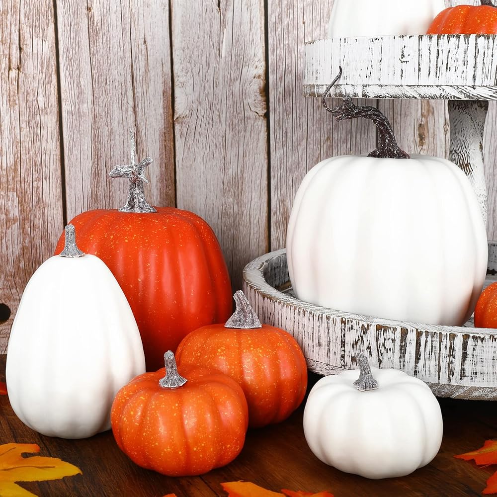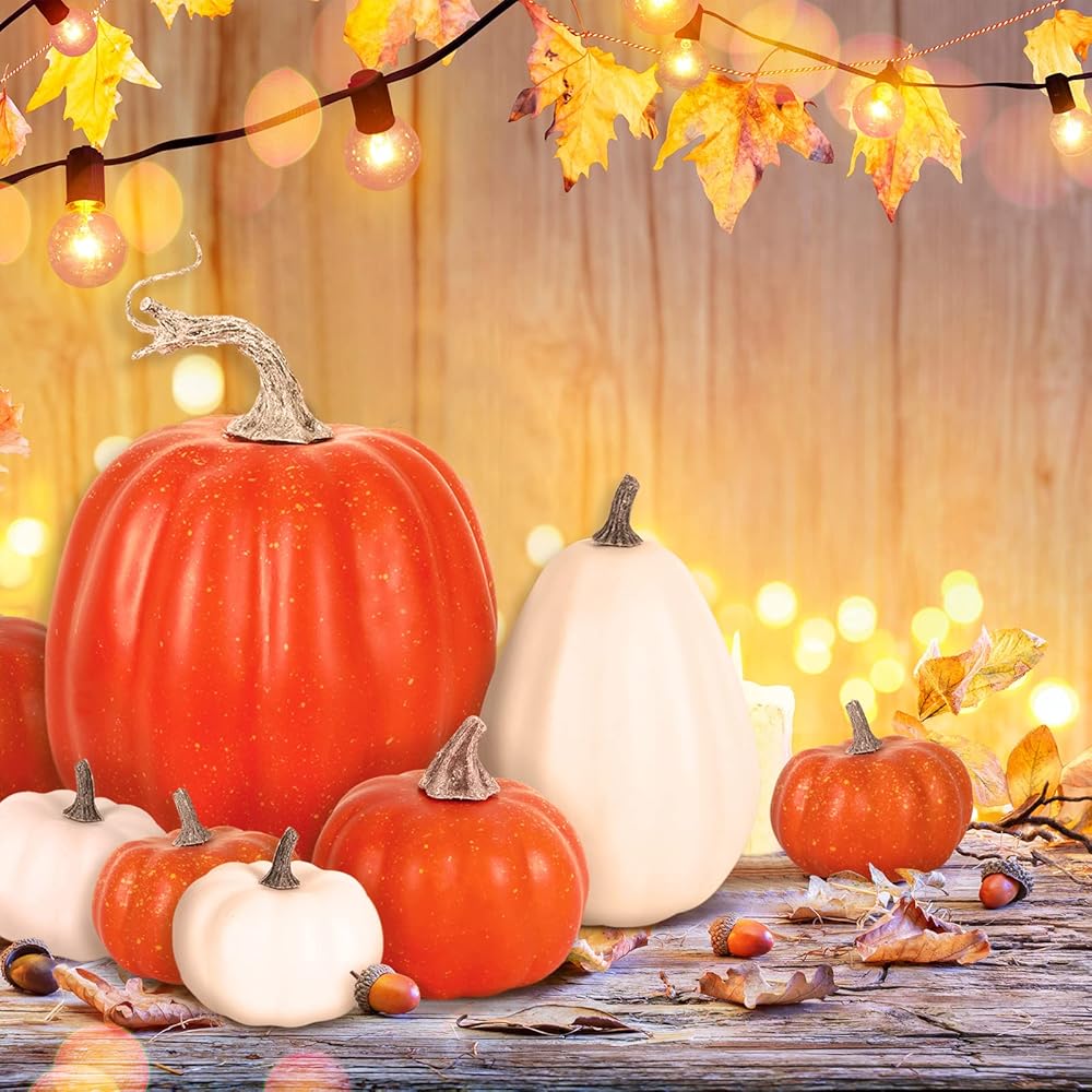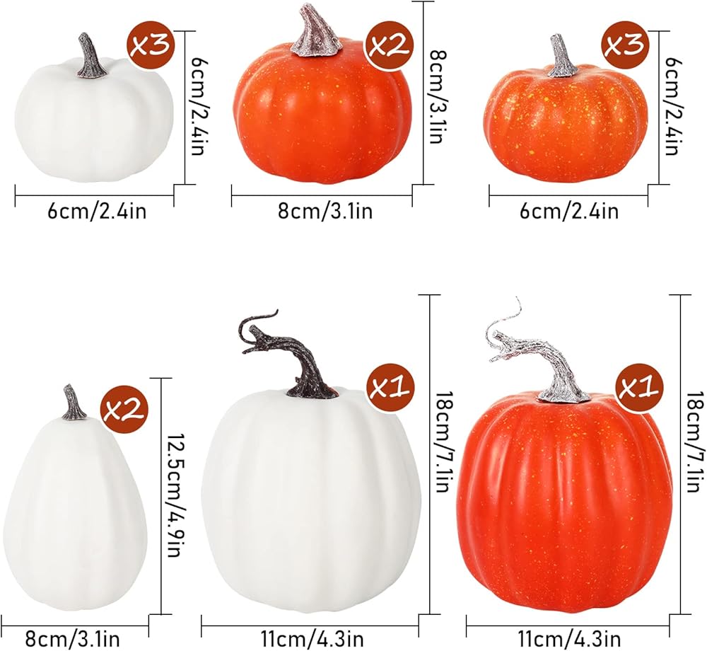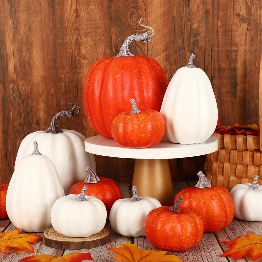تحتوي العبوة على 12 عبوة من اليقطين الاصطناعي بالكامل، وهي بألوان بيضاء وبرتقالية، كل لون 6 قطع، كمية كافية وألوان غنية رائعة بالنسبة لك.
