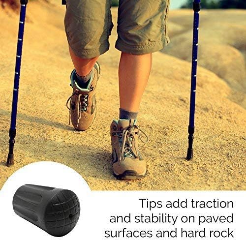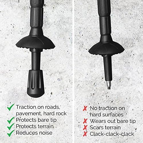 4. يمكن أن تكون الأطراف المعدنية العارية ضجة للغاية عند استخدامها على الأسطح الصخرية أو المعبدة. أطراف مطاطية أكثر هدوءًا على الصخور وتساعد على إضعاف الأعمدة .