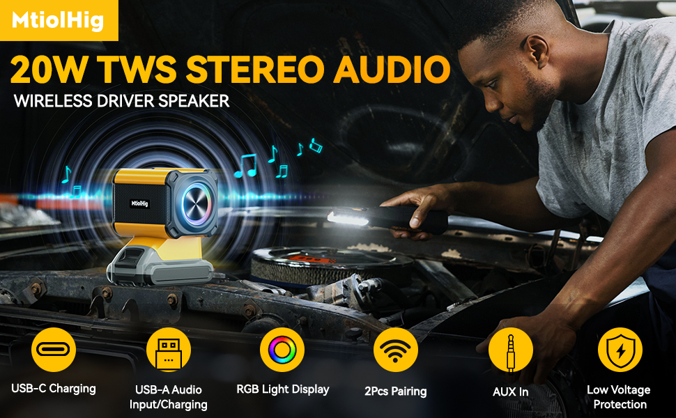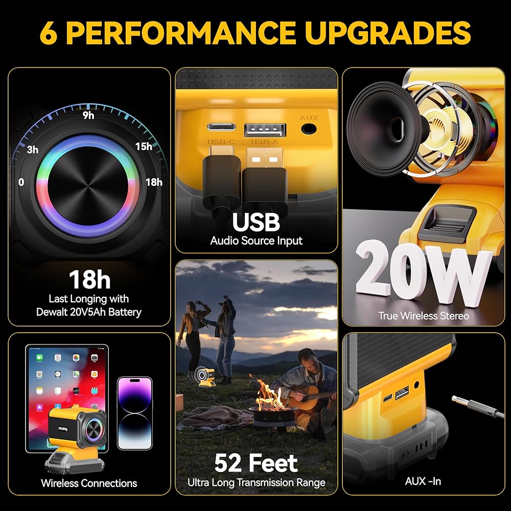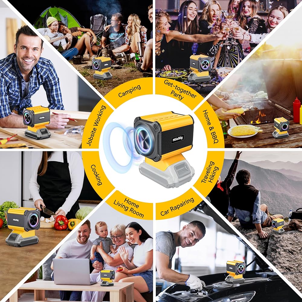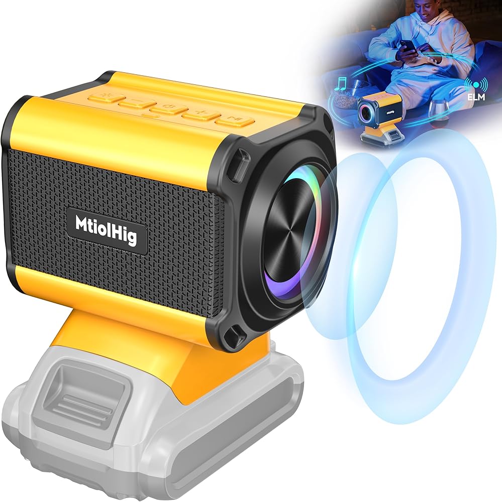 🎶تطبيقات واسعة - مكبر الصوت اللاسلكي الخارجي المحمول بتقنية البلوتوث من MtiolHig هو مكمل جيد لحقيبة أدوات ديوالت. مع هذه السماعة اللاسلكية، يمكنك الاستمتاع بالأجواء التي توفرها الموسيقى الرائعة في العديد من الأماكن، مثل متجرك، المرآب، السيارة، الداخل، المطبخ، غرفة النوم، المنزل، بيت الأدوات، التخييم، إلخ.