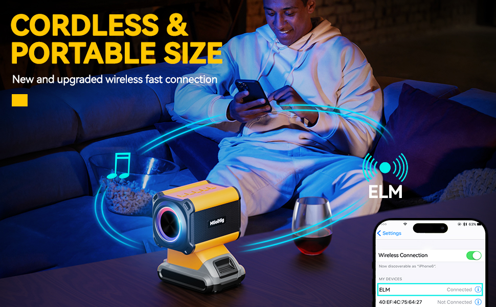 💡تأثيرات إضاءة RGB - يمكنك ضبط لون إضاءة RGB بضغطة زر لجعلها تنبض بالموسيقى وتضفي مستوى جديدًا من الإثارة على حفلتك. وفي الوقت نفسه، يمكن أن تدوم لأكثر من 12 ساعة عند استخدام بطارية بسعة 20 فولت 5 أمبير أو أكبر. إنه خيار مثالي لخلق جو مفعم بالحيوية أثناء الأحداث الخارجية أو تحسين إعداد سطح المكتب لديك.