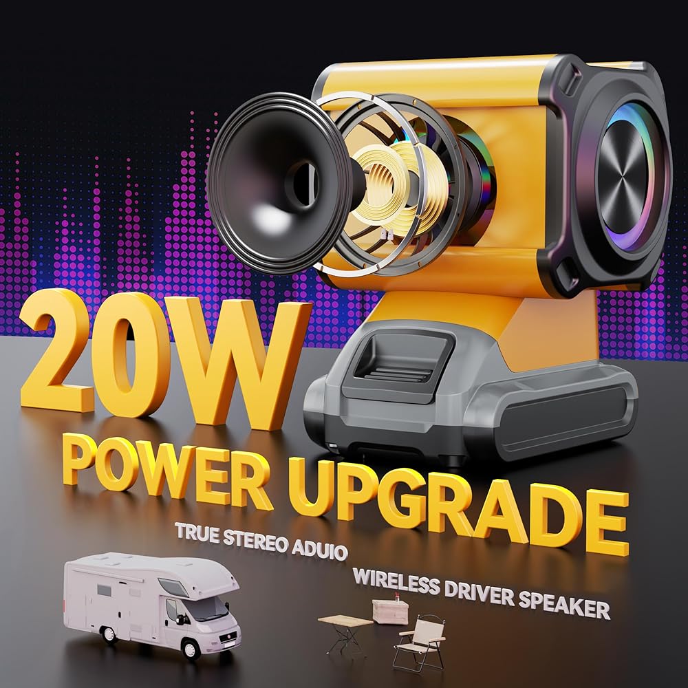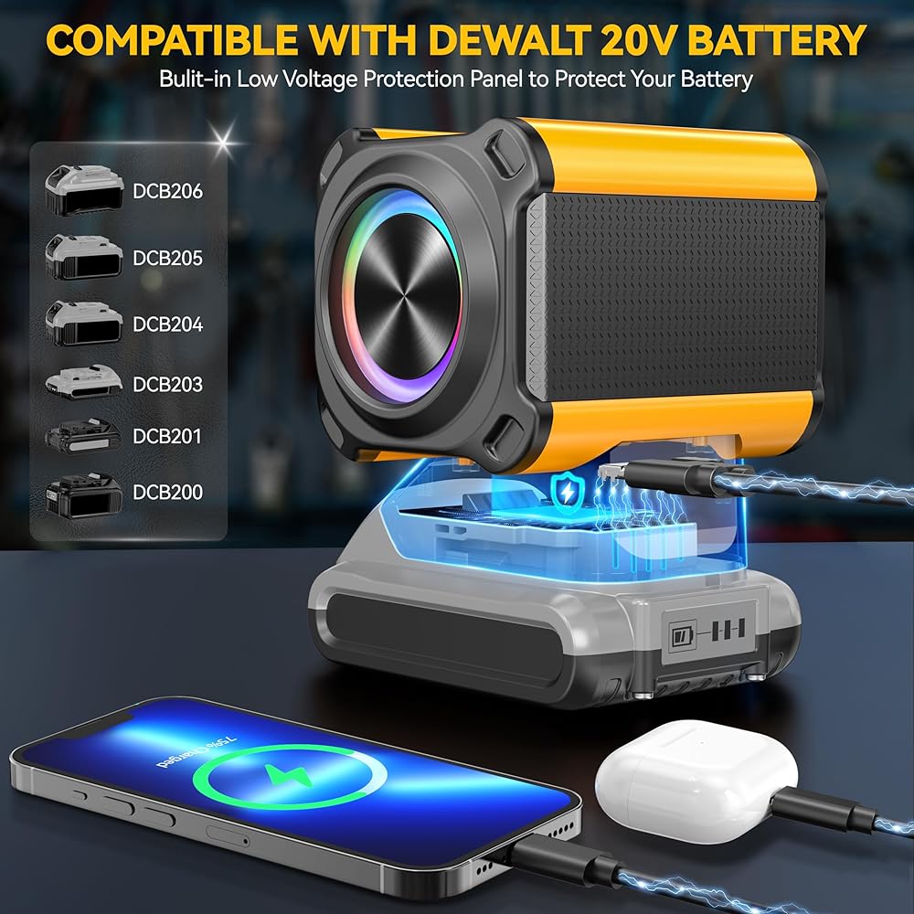 🔋متوافق مع بطارية DEWALT - تم تصميم مكبر الصوت اللاسلكي MtiolHig ليتوافق مع بطاريات DeWALT 20V/18V lin-ion، بما في ذلك موديلات مثل DCB200، DCB201، DCB203، DCB204، DCB205، DCB206، وغيرها. مع مكبر الصوت الاستيريو المحمول هذا، يمكنك الاستمتاع بالموسيقى أثناء العمل في المرآب أو سقيفة الأدوات، مما يمنحك جو عمل مريح وممتع.