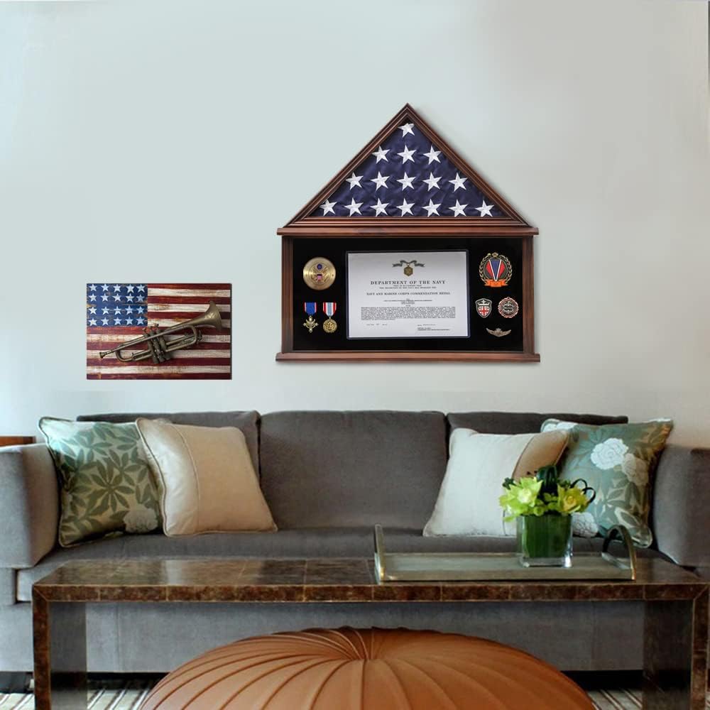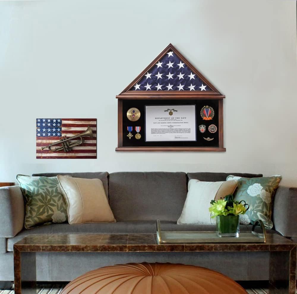 Zmiky burial flag display case for burial flag is REAL GLASS ,Clear view of flag, certificate and medals.