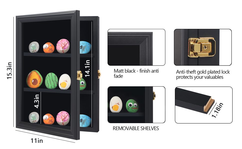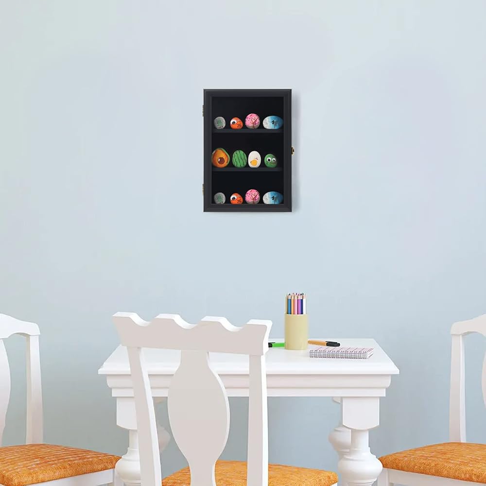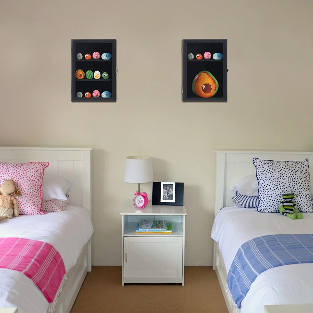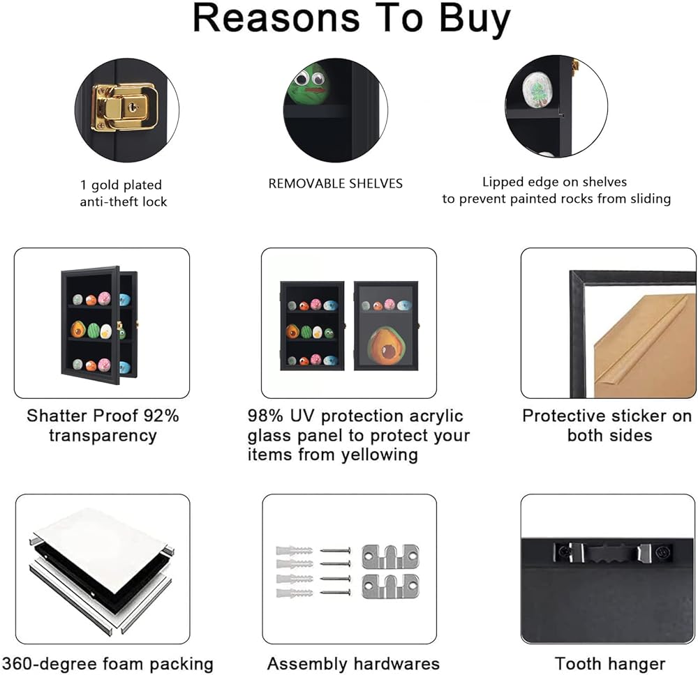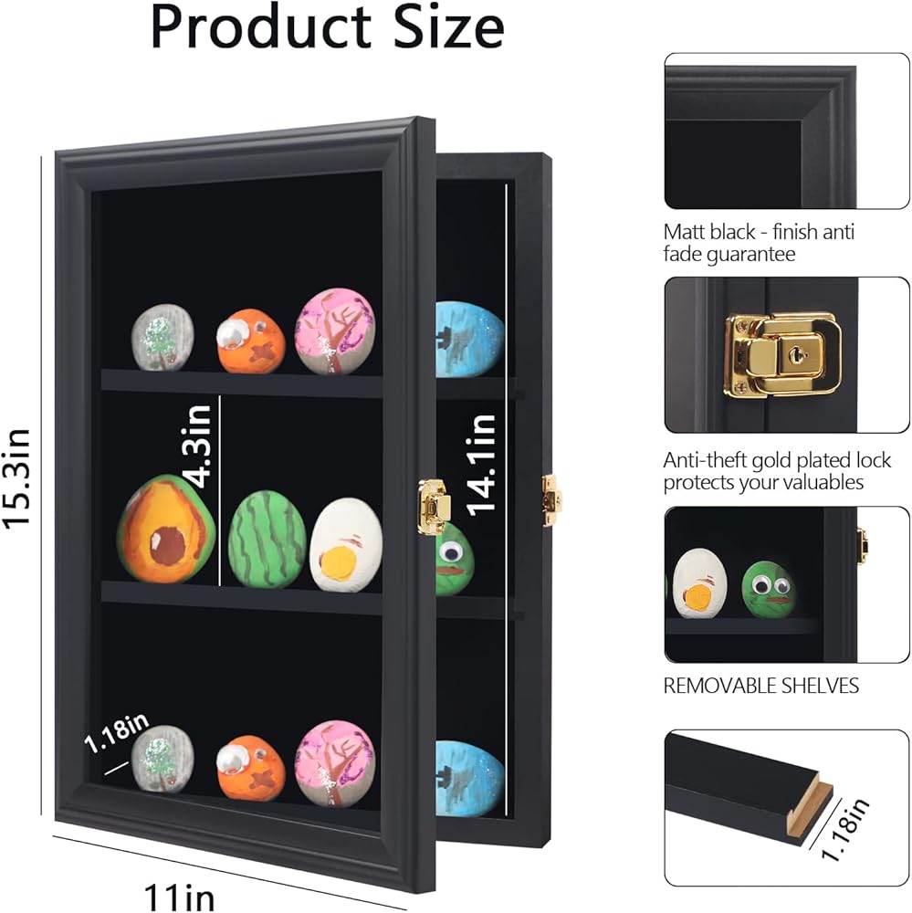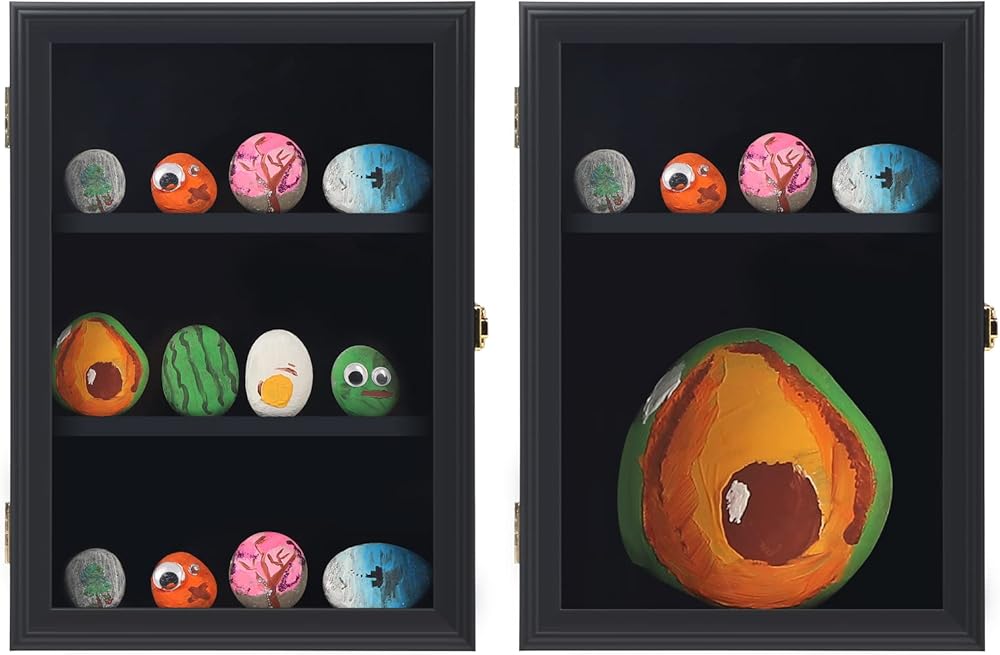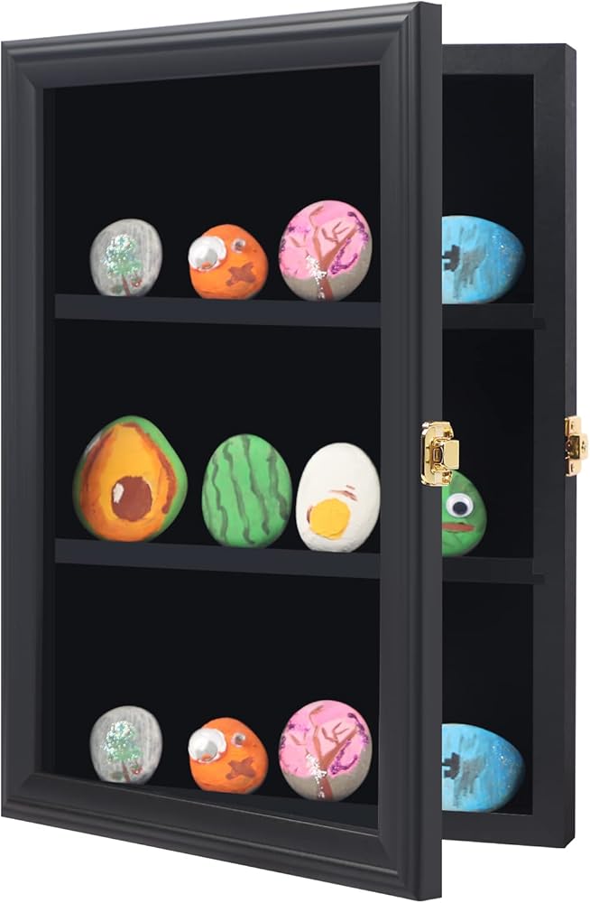 علبة عرض الصخور لطلاء Tieeqe - صندوق ظلال مقاوم للغبار لصخور النهر المطلية - خزانة عرض صخرية مصقولة مع أكريليك مضاد للأشعة فوق البنفسجية بنسبة 98% للصخور الناعمة، هدية لمحبي طلاء الصخور باللون الأسود