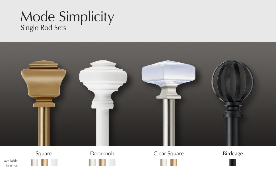 • تصميم حديث - مجموعة قضبان الستائر من مجموعة MODE Simplicity تتضمن نهايات مربعة شفافة للحصول على مظهر عصري ونظيف. استخدم فريق متخصص من المصممين أحدث اتجاهات التصميم لإنشاء هذه اللمسة النهائية الحديثة.
