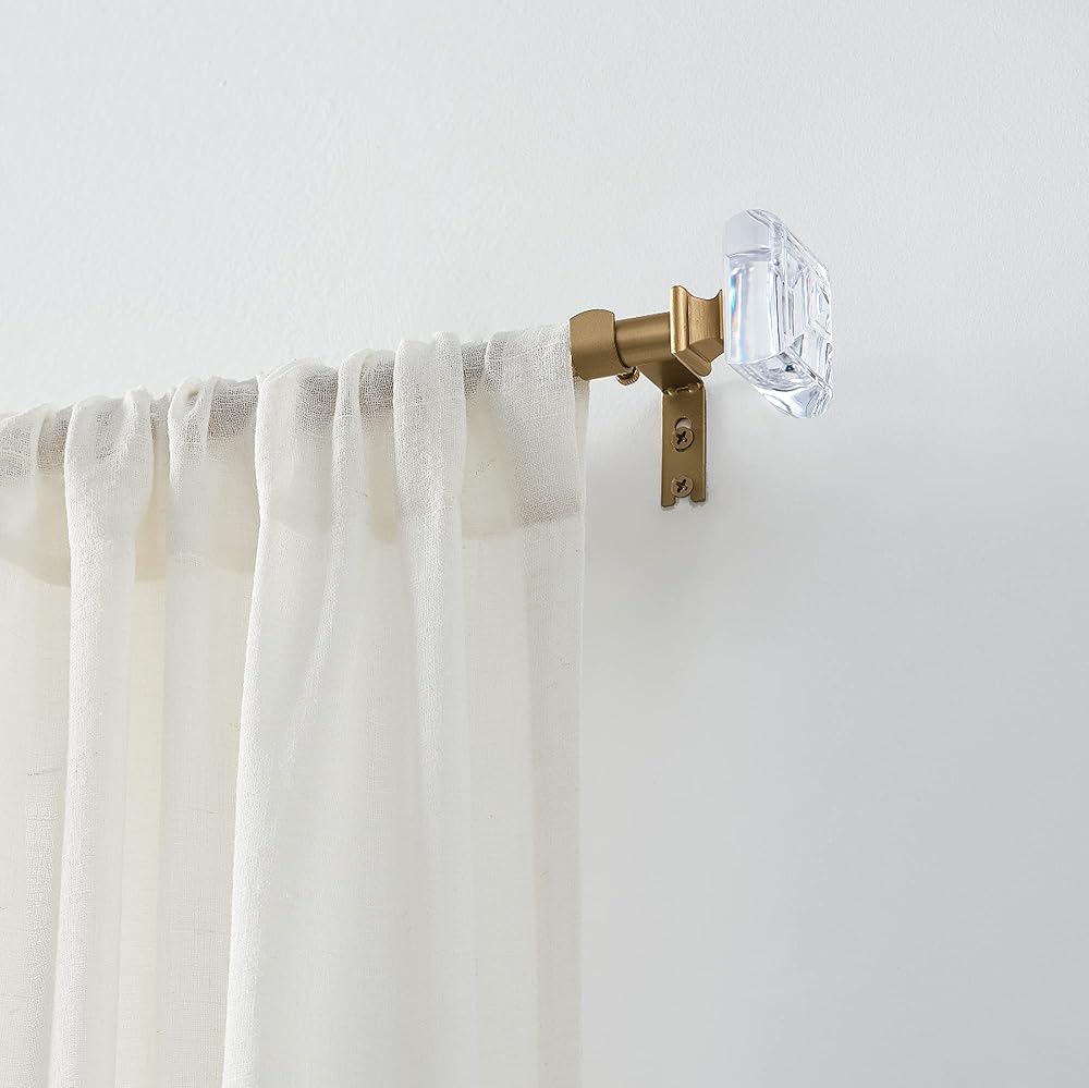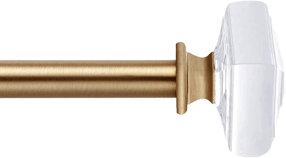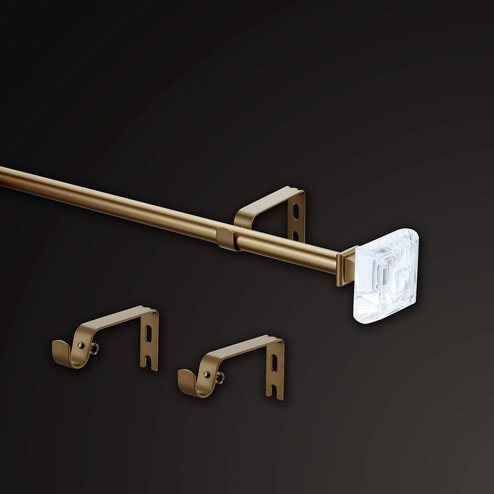 مجموعة قضبان ستارة MODE Simplicity بقطر 5/8 بوصة مع نهايات قضيب ستارة مربعة شفافة وقضيب ستارة قابل للتعديل مثبت على الحائط من الفولاذ، يناسب نوافذ من 32 بوصة إلى 90 بوصة، ذهبي