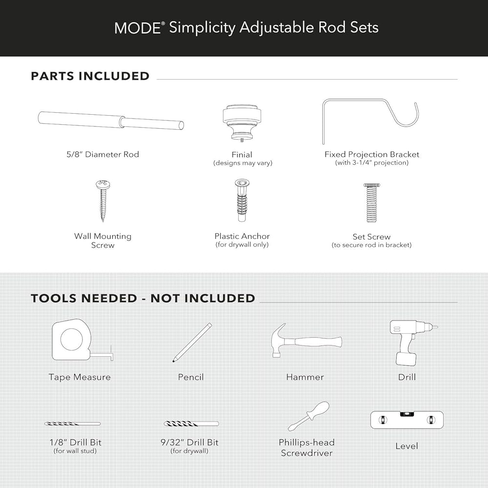 • حرفية عالية الجودة - مع أكثر من 25 عامًا من الخبرة، تعد MODE علامة تجارية يمكنك الوثوق بها لجلب الجمال والعملية والراحة إلى منزلك. جميع قضبان ستائر MODE مغطاة بضمان الشركة المصنعة لمدة عام واحد.