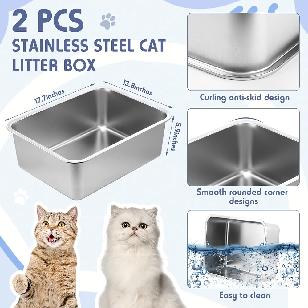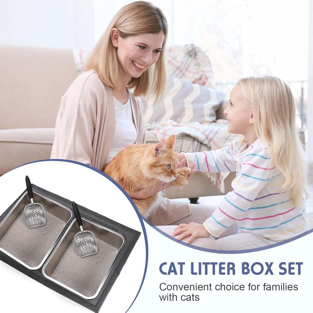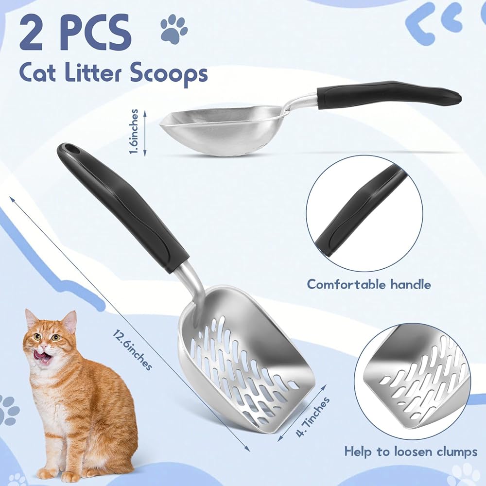 There are 2 pieces of kitten litter boxes and 2 pieces of scoops in the set. If you have more than one pet at your home, you can take care of them at the same time and save more energy.