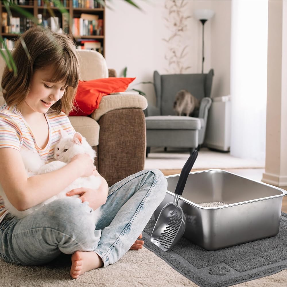 All the products in our package do not have sharp edges, which will not cause harm to you and your pets, and you can use litter box with scoop and mat in confidence. At the same time, these products are made of durable materials, so that they have a long service life.