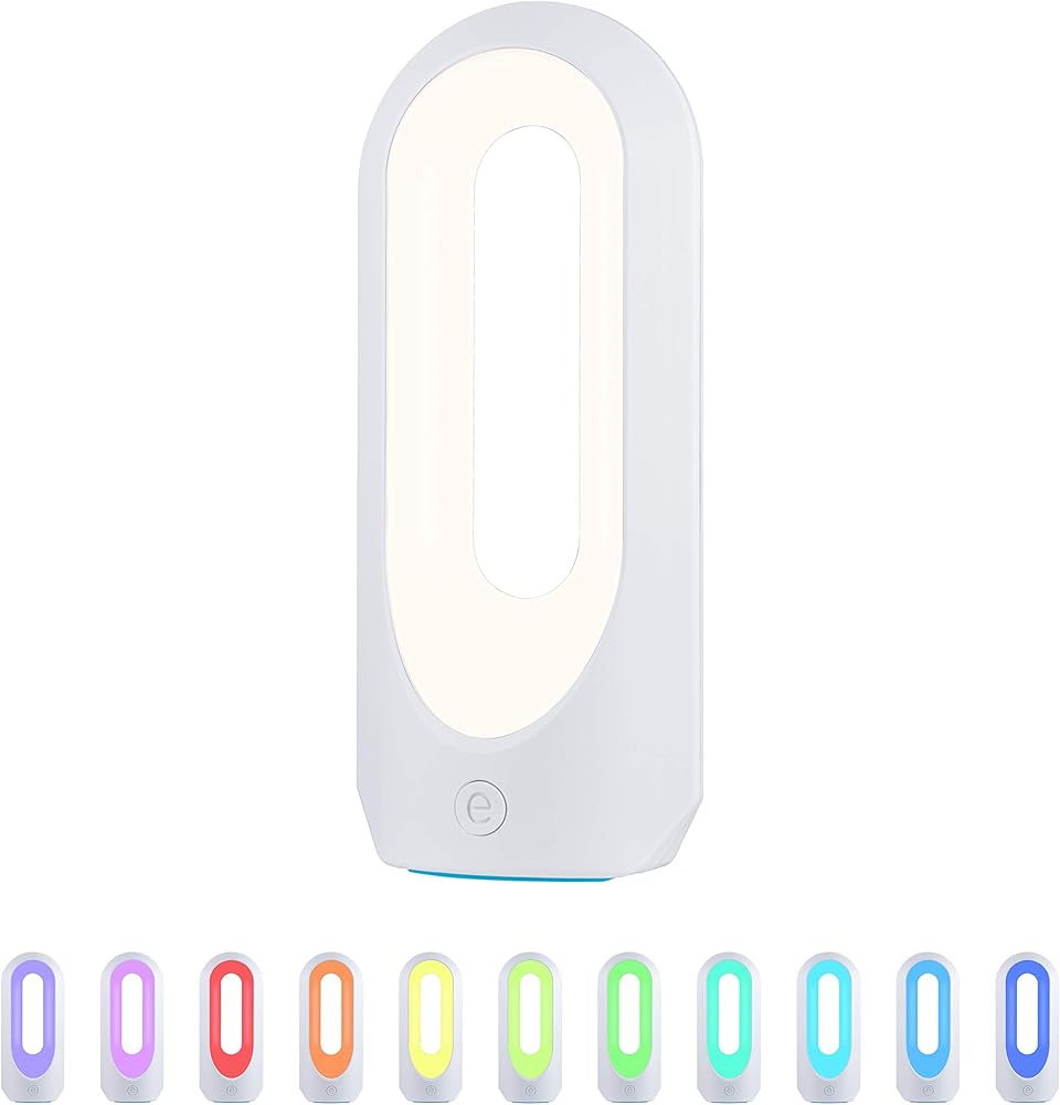 مصباح LED متغير اللون من Enbrighten، ليلة عصرية، أبيض خافت وألوان RBG نابضة بالحياة، أساسيات النوم، مثالية للمكتب المنزلي، الألعاب، غرفة النوم، غرفة الأطفال، ضوء القراءة، 49632، بلاستيك، أبيض