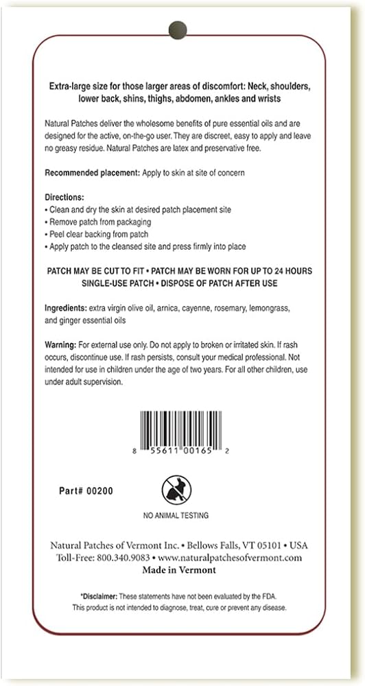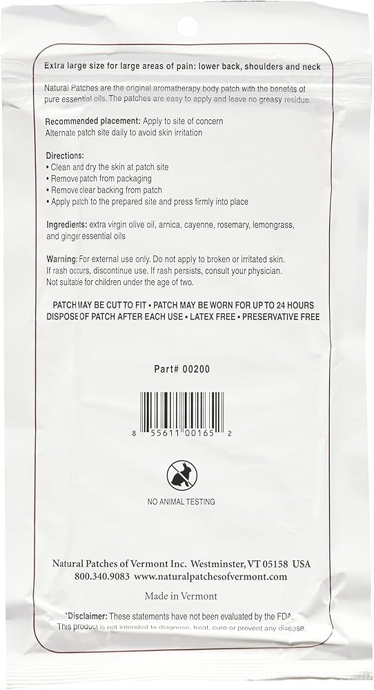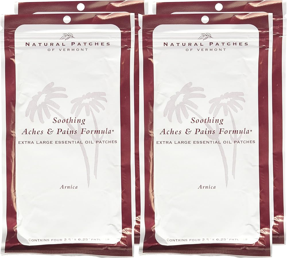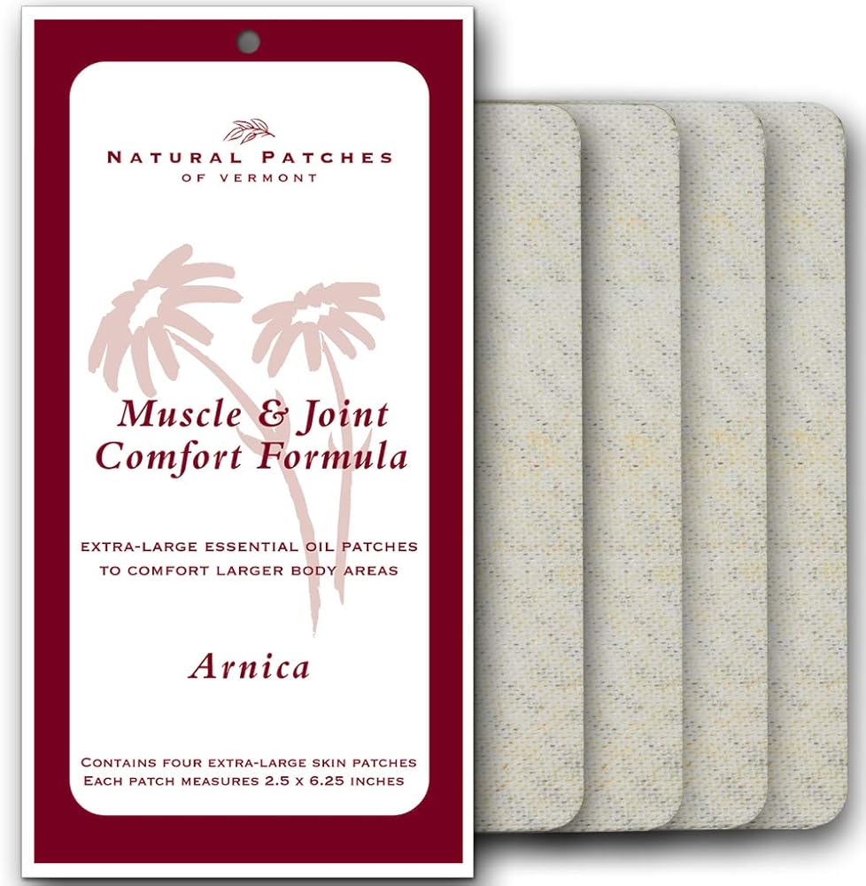رقع طبيعية من Vermont 00200 XL من Arnica للعضلات والمفاصل المريحة، 2.5 سم × 16.5 سم، 4 قطع قابلة للإزالة.