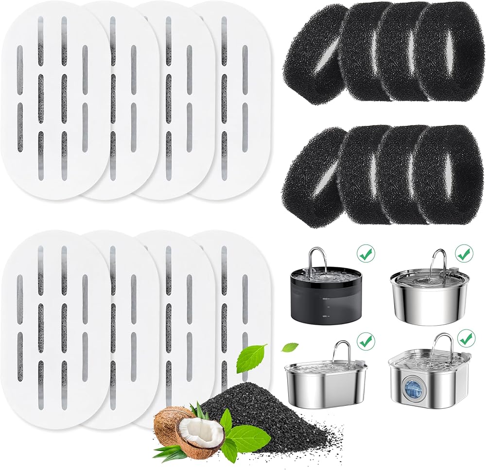- 【توافق واسع】- متوافق مع معظم نوافير الحيوانات الأليفة المصنوعة من الستانلس ستيل. يرجى التحقق من حجم فتحة بطاقة نافورة قطتك قبل الشراء