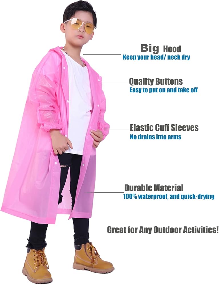 • ECO-FRIENDLY MATERIAL: ASIAOD rain jackets for boys and girls are made of high-quality, eco-friendly EVA material, non-toxic, no smell and harmless, much better than the other materials PE PVC or PEVA.