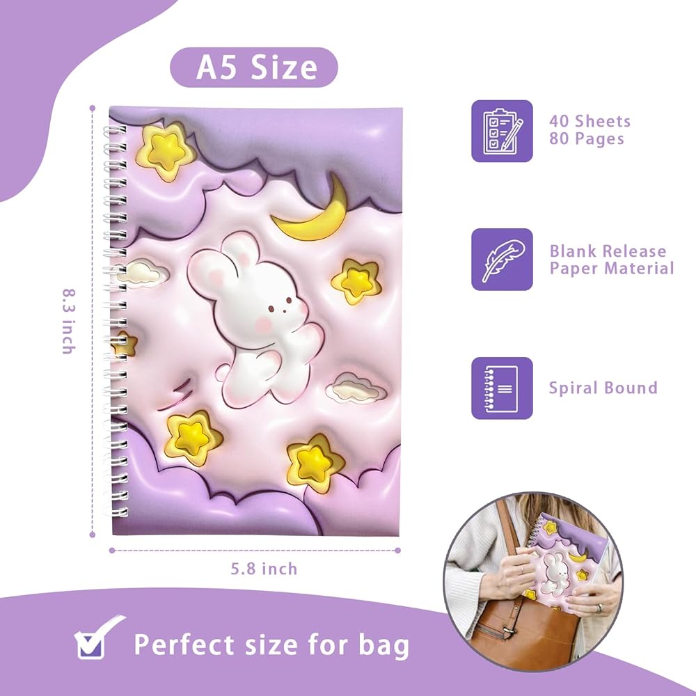 Number of Pages:the blank sticker book with a total of 40 pages, each page is double-sided, providing 80 usable surfaces, allowing for ample space to collect and organize your stickers.High Quality Materials: Crafted from high-quality release paper, The same material as the stickers backing. it allows for easy removal and reapplication without compromising the adhesive qualityA5 Size: The portable sticker storage book measures 8.3 x 5.8 inches (21 x 14.8 cm), making it easy to carry with you wherever you go. Slip it into your bag or backpack, and you'll never miss an opportunity to add to your collection or show it off to your friends.