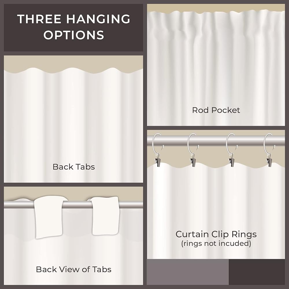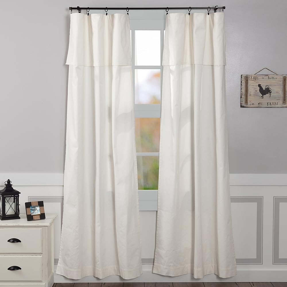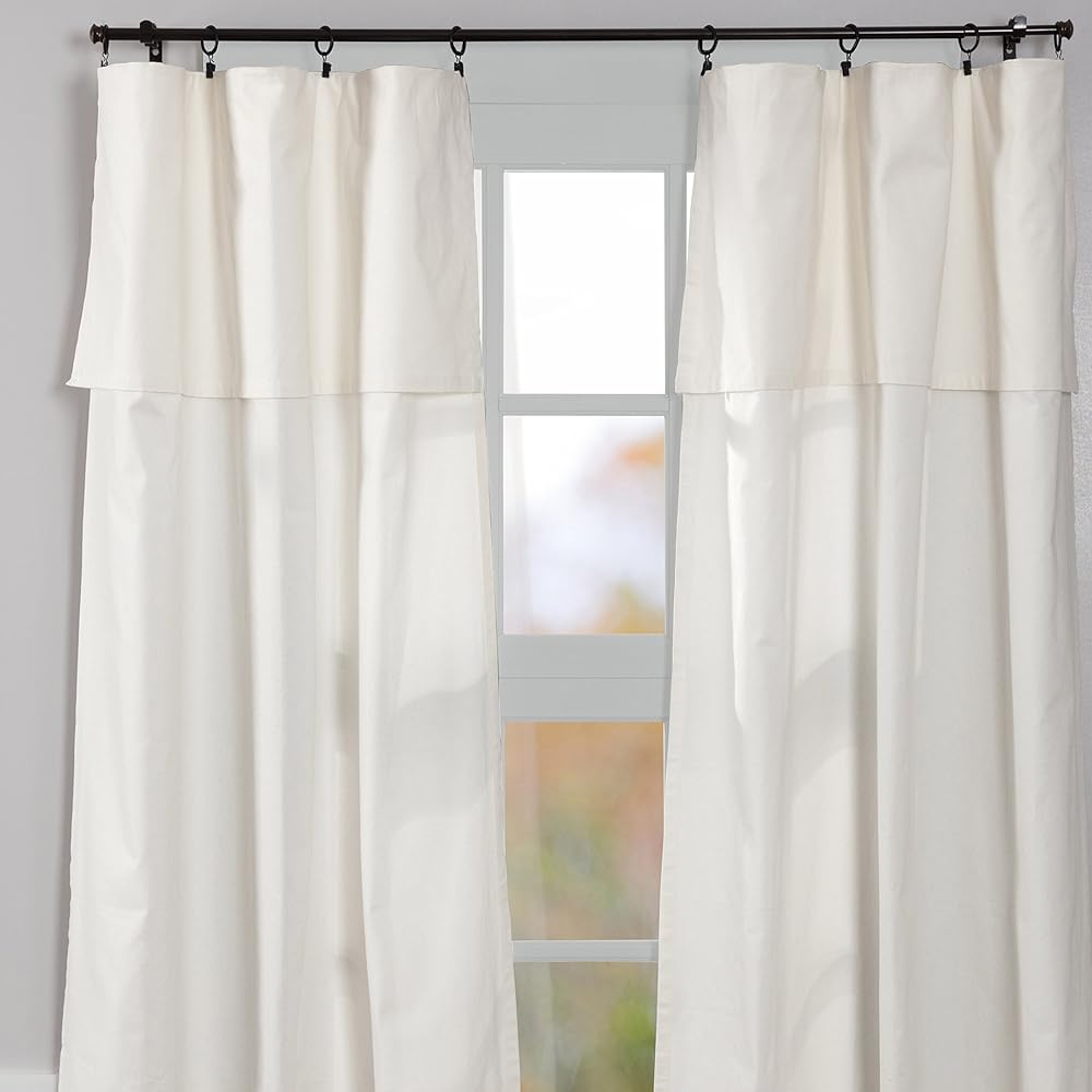 قماش بطة قطني أبيض محكم وشديد التحمل؛ الستارة مثبتة في أعلى اللوحة، وتغطي جيب القضيب. جيب على شكل قضيب مقاس 8.25 سم مع حلقات قماشية في الخلف للتعليق الاختياري. مادة القماش.