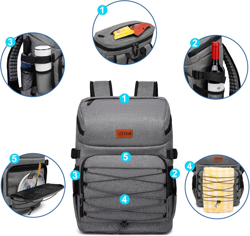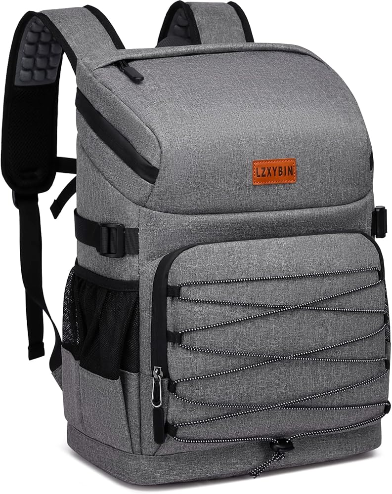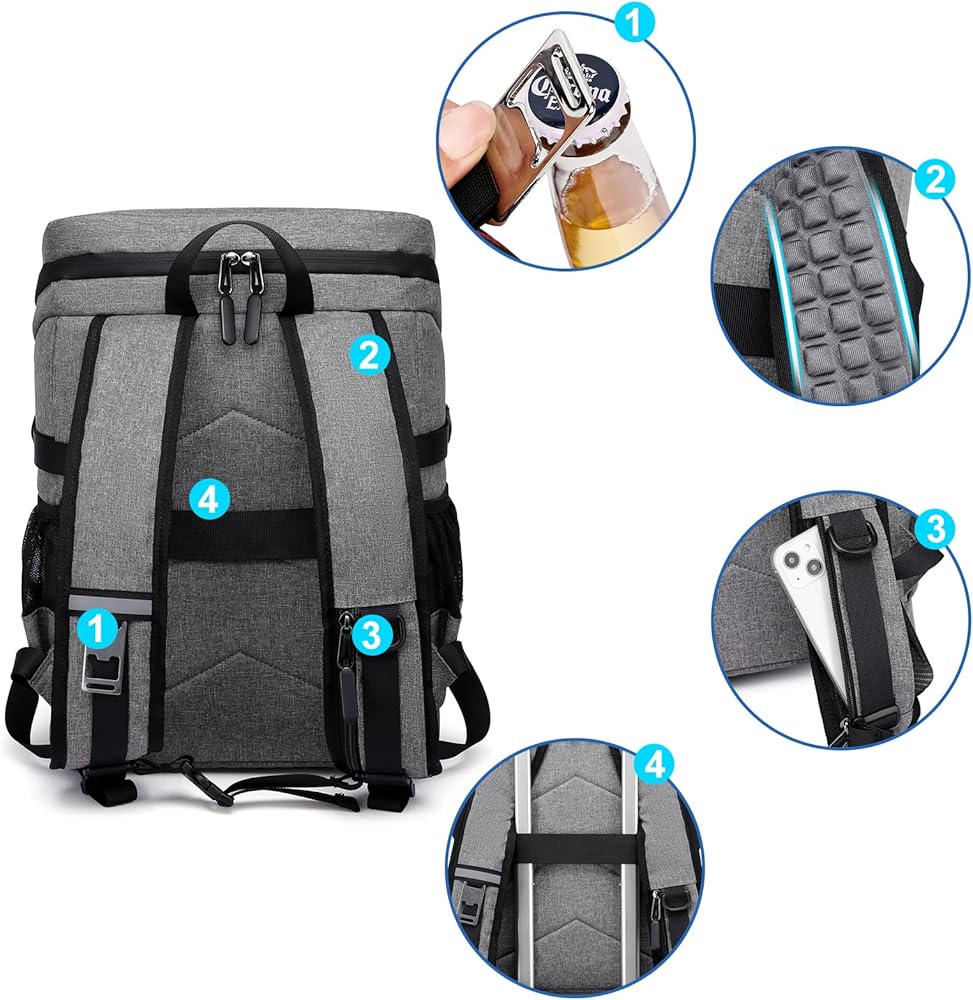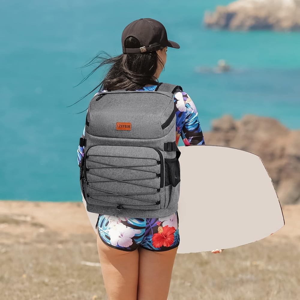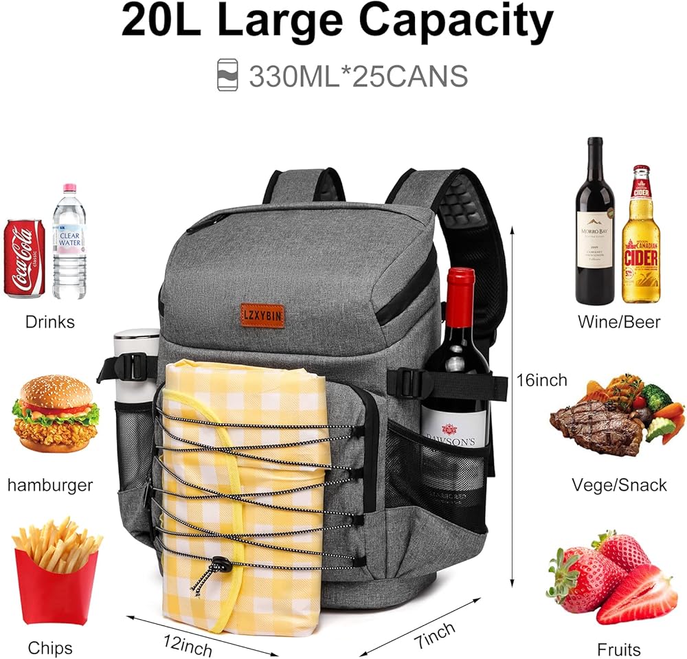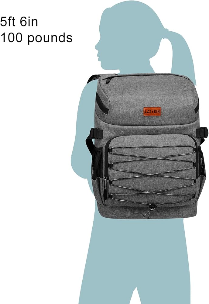 LZXYBIN Backpack Cooler Insulated Leak Proof For Women Whether you have a strong interest in road trips, beach trips, kayaking, picnics or daily hiking, the LZXYBIN waterproof soft side cooler backpack is your best partner for all types of outdoor activities or travel, beach accessories for vacation must haves. The stylish design of this small insulated backpack with cooler compartment make it can be used as a lunch backpack or daily back pack. Separate top storage pocket keep items cool & dry Front pocket holds wallet, tissue, camping dishes and utensils Side pockets hold umbrellas, water bottles, wine and drinks Easy to clean Adjustable chest strap Mesh pocket on shoulder strap for smaller things Bottle opener Perfectly padded shoulder straps Reflective elastic cord Specifications: Dimension: 12"W x 16"H x 7"D Net Weight: 1.6 Pounds Capacity: 20L, 25 cans(330ml) Please NOTE: 1. Don't put sharp objects in the bag 2. Reusable ice packs are recommended instead of ice cubes to keep cool
