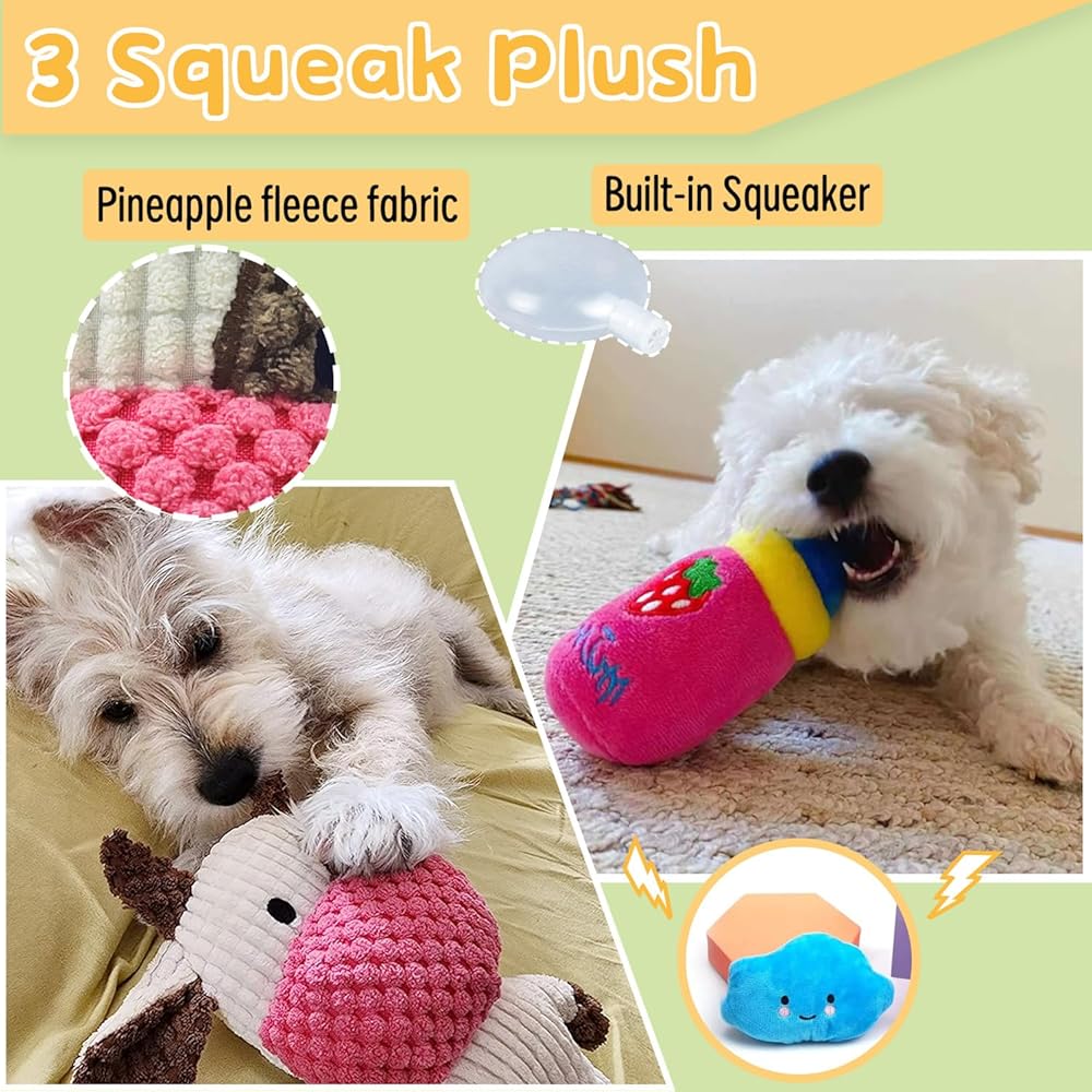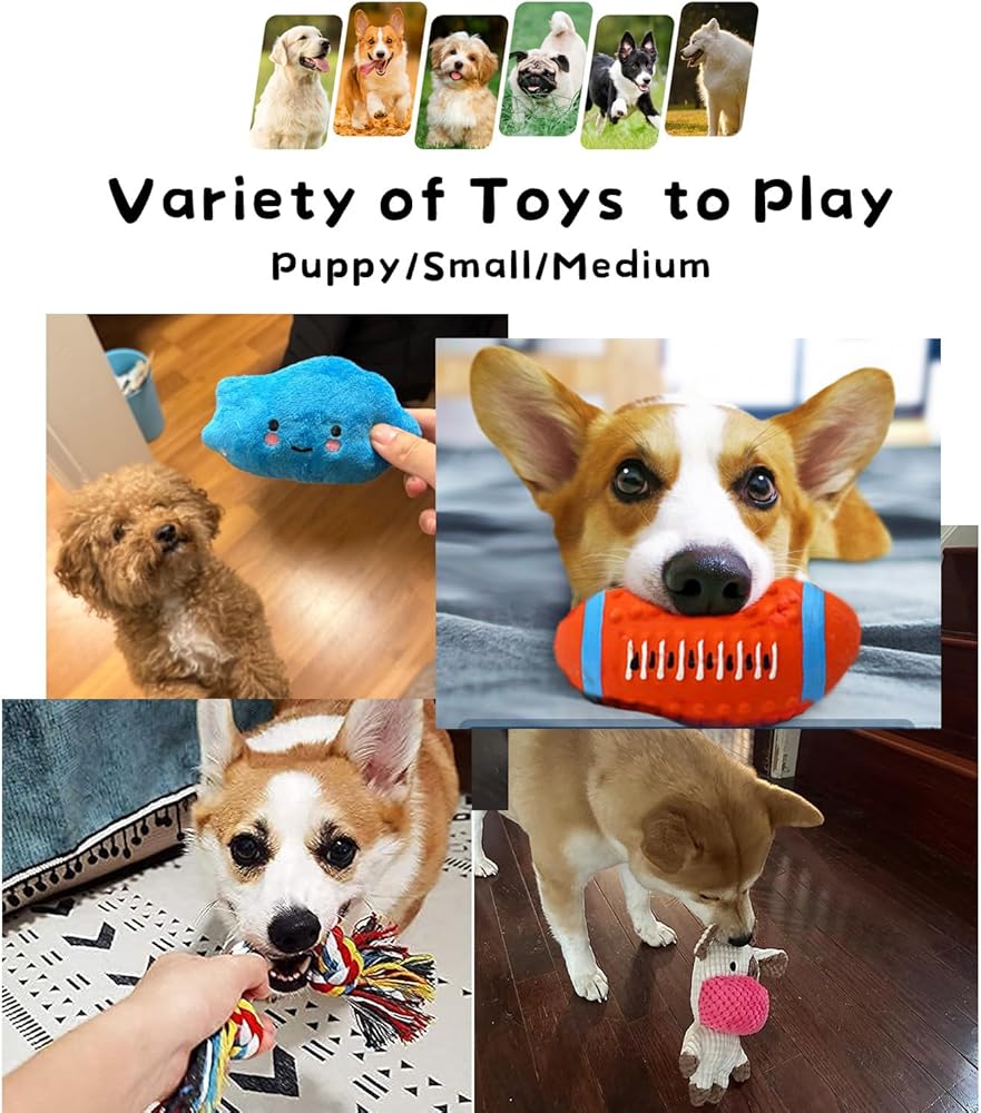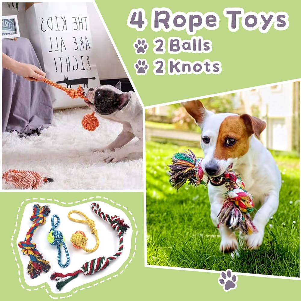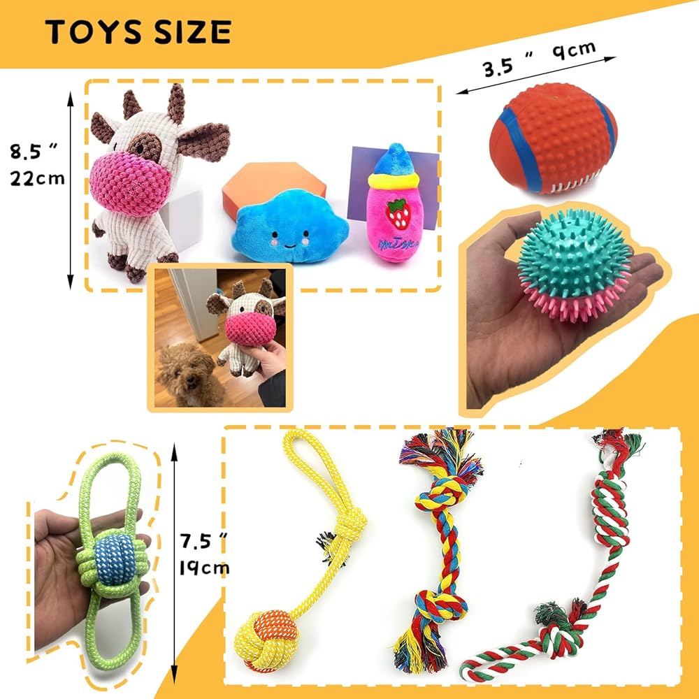 【مجموعة مكونة من 9 ألعاب للكلاب】تتضمن ألعاب الجراء الجميلة التي تصدر أصواتًا وألعابًا قطيفة وألعاب حبال مختلفة للكلاب. ألعاب الجراء المتينة هذه جميعها مفضلة للكلاب الصغيرة أو الجراء. مثالية للكلاب الصغيرة للعب الألعاب التفاعلية وتبقي جروك سعيدًا ومشغولاً.