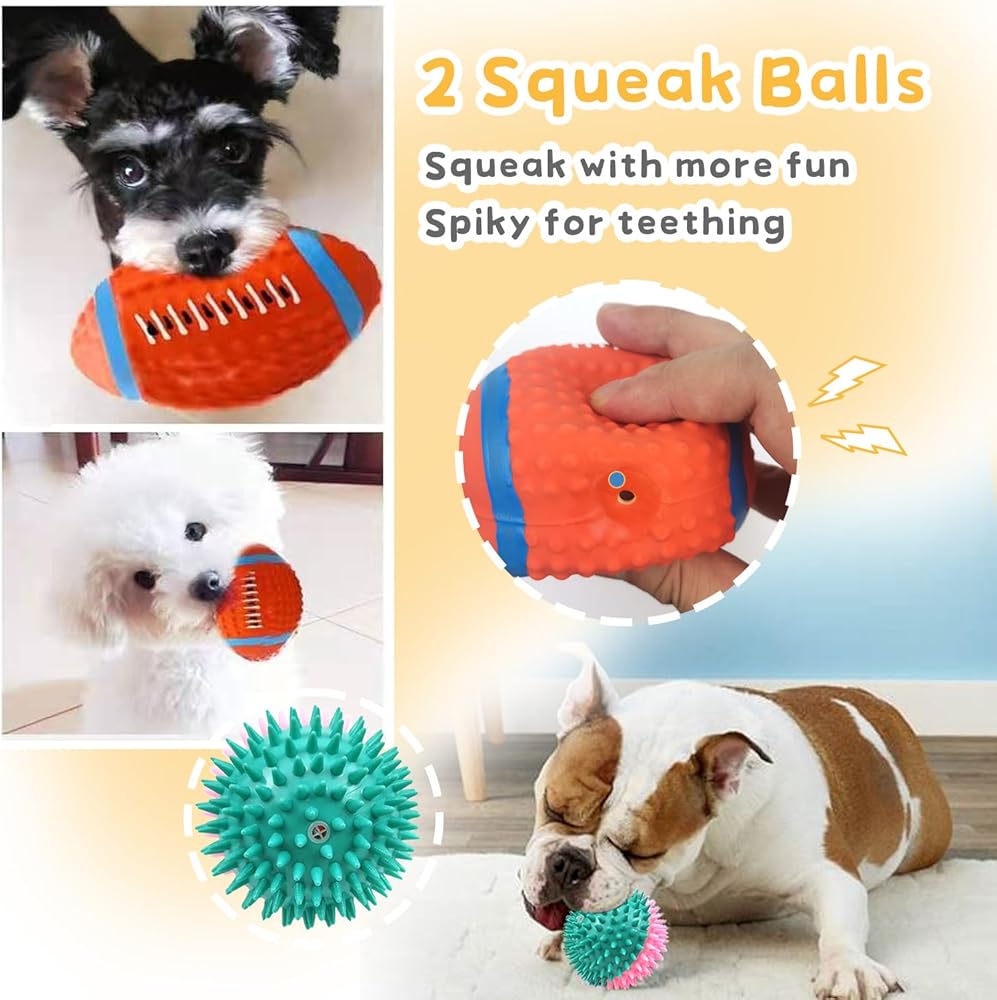 【حزمة ألعاب تصدر أصواتًا للكلاب】 الألعاب التي تصدر أصواتًا للكلاب تعني اللعب الممتع الرائع، لعبة الكلاب الأليفة تحتوي على أصوات صرير في جسمها، حجم ألعاب المضغ للجرو مثالي لجروك، الكرة ذات الجرس رائعة للعب، وليس للمضغ. !!! لن يشعر كلبك بالوحدة عند الخروج ولن يعض أثاثك، كما حافظ على منزلك مرتبًا.