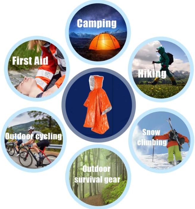 • MUTIPLE USE: Can be used as a poncho and a thermal blanket simultaneously, making it perfect for your bug out bag, hiking gear, earthquake kit, survival kit, or car.