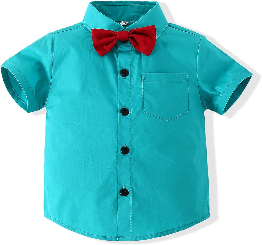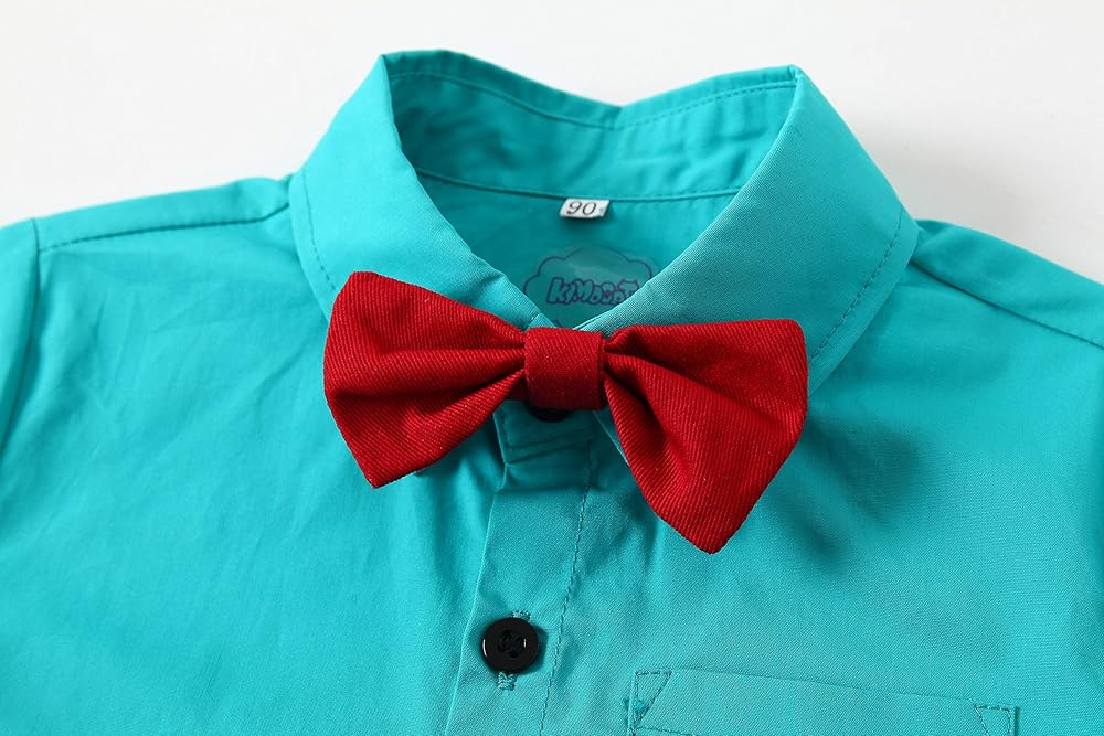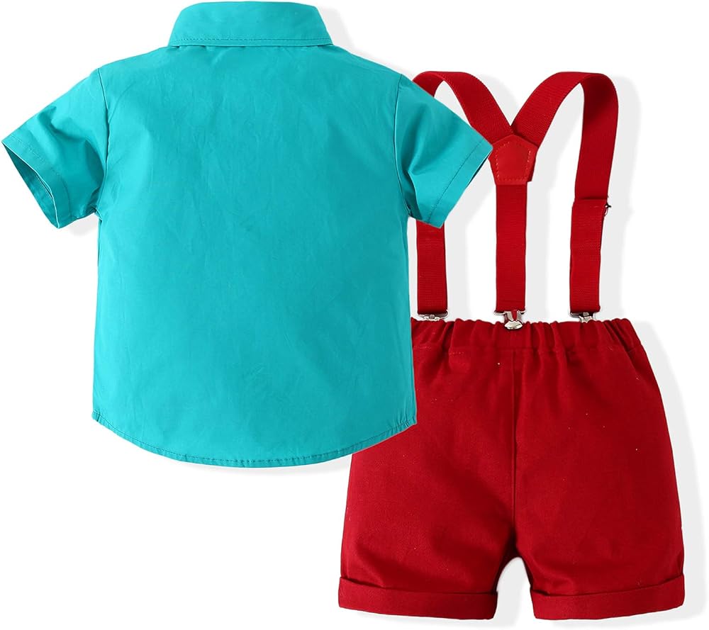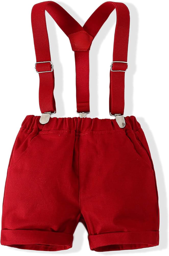 • AFFORDABLE & SOLID CHOICE--Including: 1 Bowtie shirt+1 pants+1suspender.Toddler Baby Boys Gentleman Short Pants Suits Set Clothing, for spring,summer,fall wear.