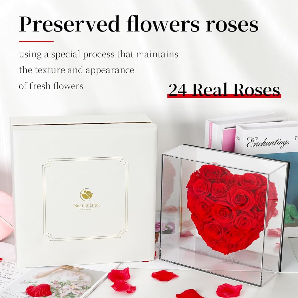 Women Gifts for Christmas, Preserved Flowers Roses for Her,Birthday Gifts for Women,Mom Gift For Xmas,Heart-shaped Flowers in Mirror Square Boxes Covered in Acrylic,Flower Gifts For Wife,Anniversary