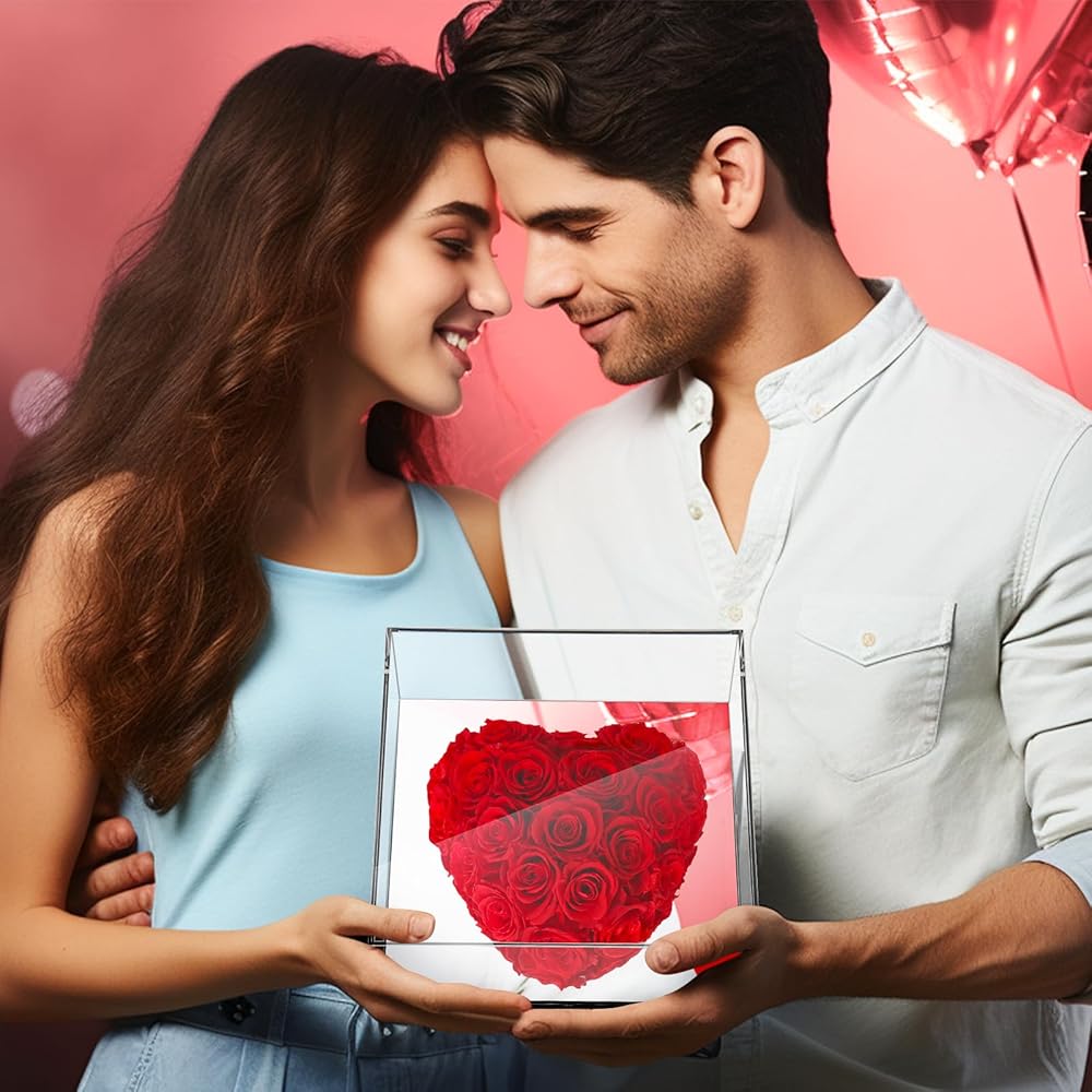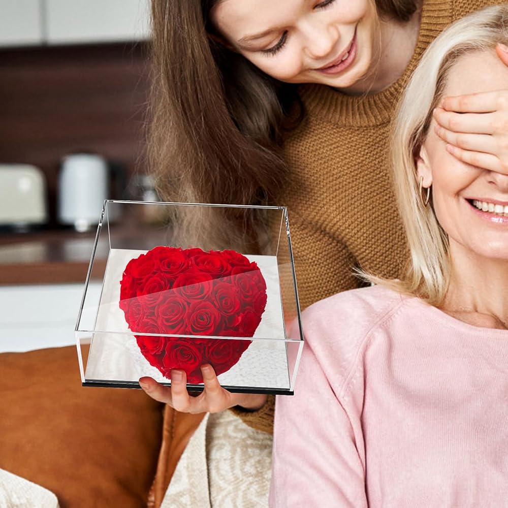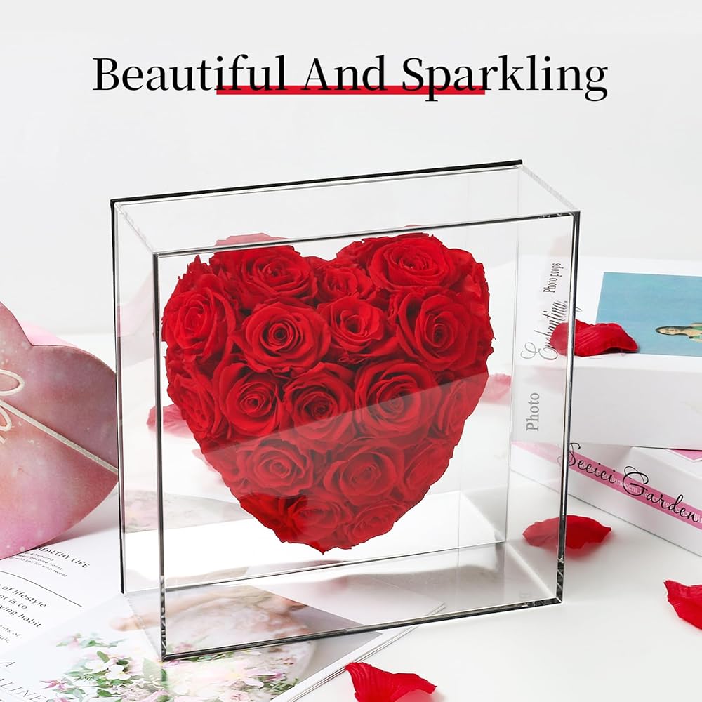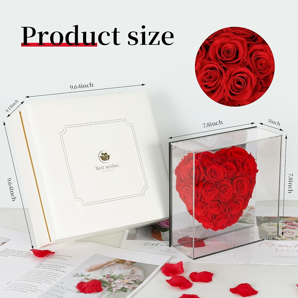 【Mirror Square Boxes Covered in Acrylic】: Our preserved flower roses are elegantly arranged in a heart shape presented in a sophisticated mirrored square box, encased in durable acrylic, perfect for displaying on a dressing table or shelf. The rose gift comes with white gift box, so that you could give directly without spend time on package. Great romantic rose flower gift for her,women gifts for mom,anniversary gifts for wife,mom birthday gifts and wedding gift for lovers and friends.