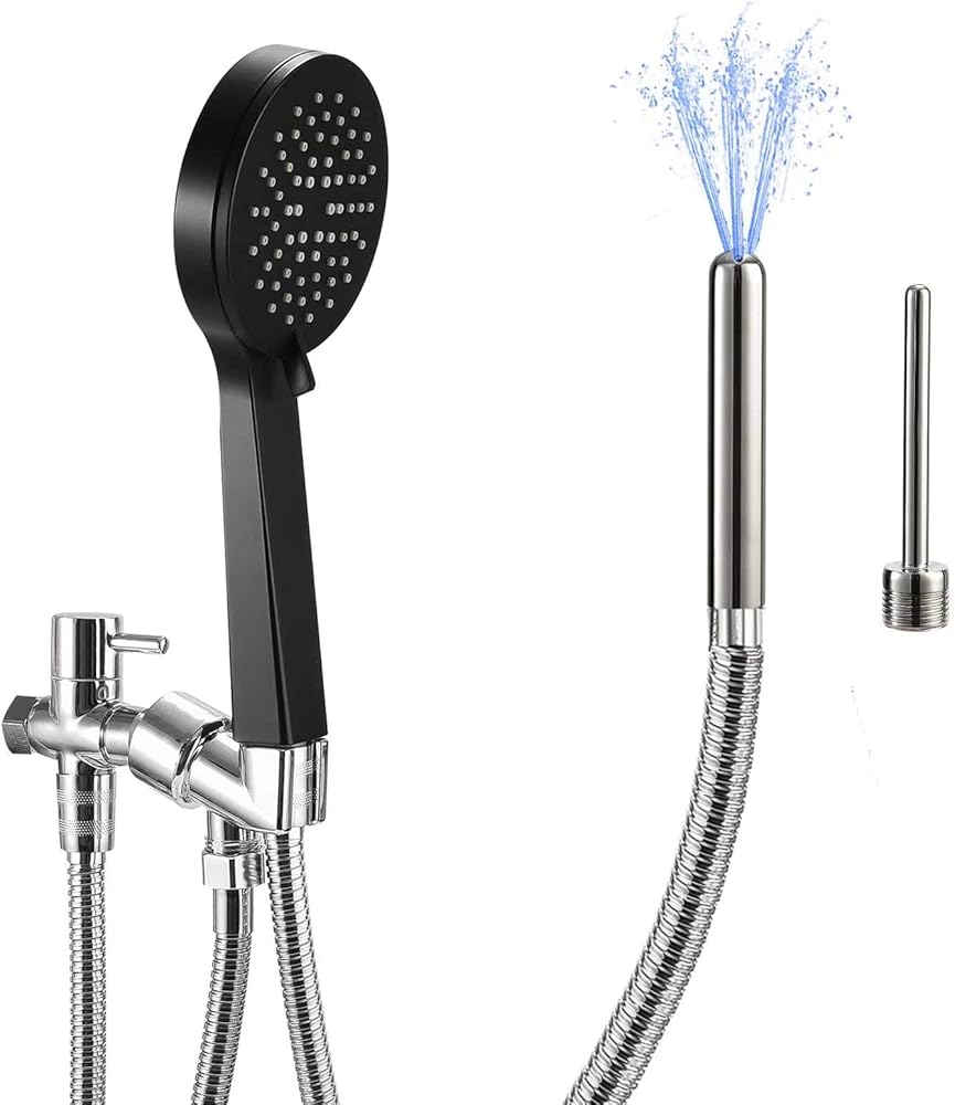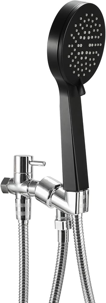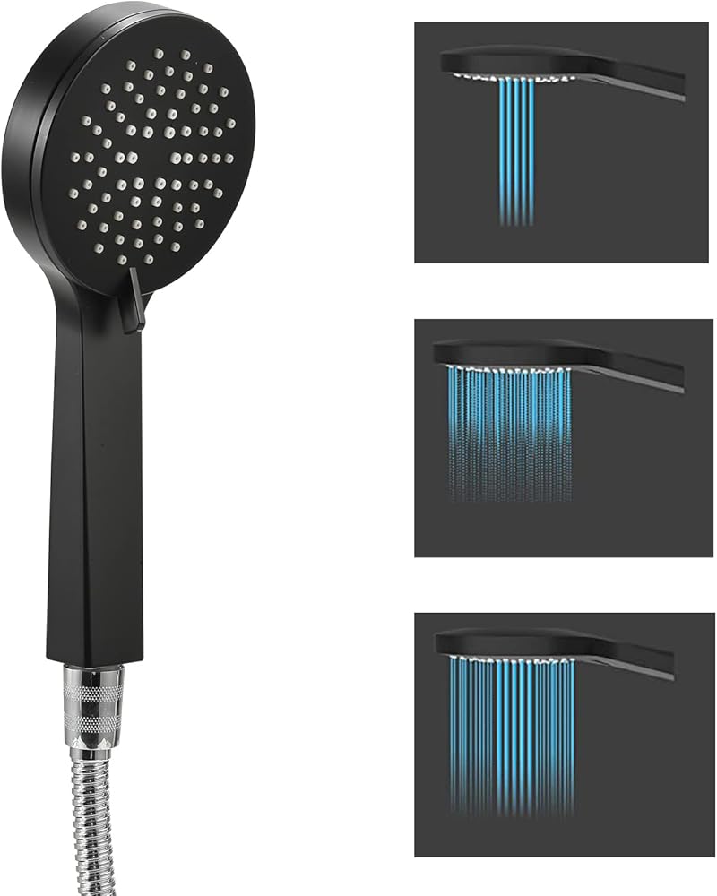 Shower Head: 3 SPARY SETTINGS: Funny Steel handheld showerhead has 3 spray modes:full body spray, rain mist and energy saving spray.HIGH-QUALITY MATERIAL: This hand shower is made of ABS plastic with black finish, anti-rust and insulation for long term durability