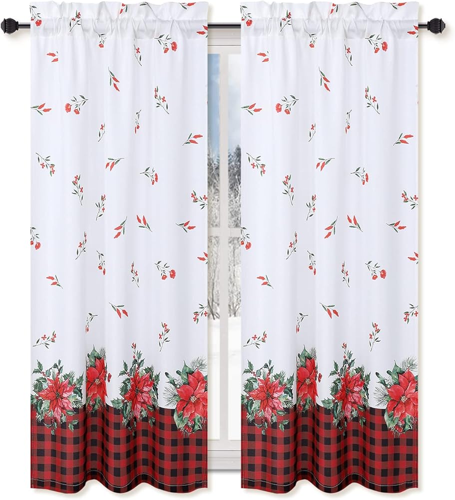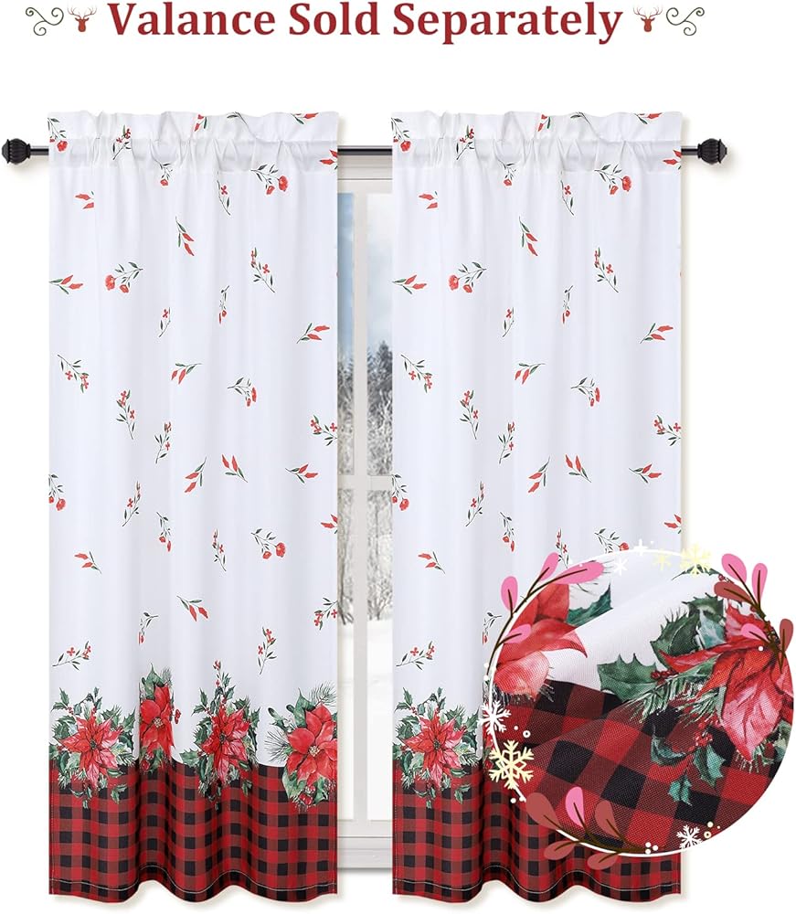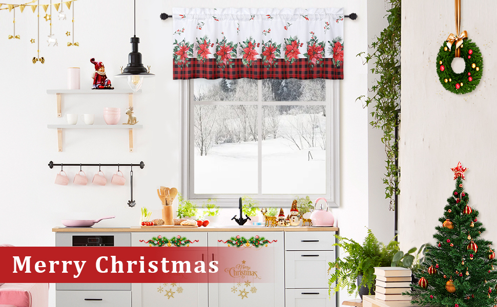 سهلة الإعداد: تحتوي ستائر النافذة على جيب قضيب بمقاس 5 سم، وسيكون من السهل تعليقها. ستارة المطبخ شبه الشفافة لعيد الميلاد مصنوعة من نسيج البوليستر، متينة وناعمة. من السهل إضافة لون موسمي إلى نوافذك.