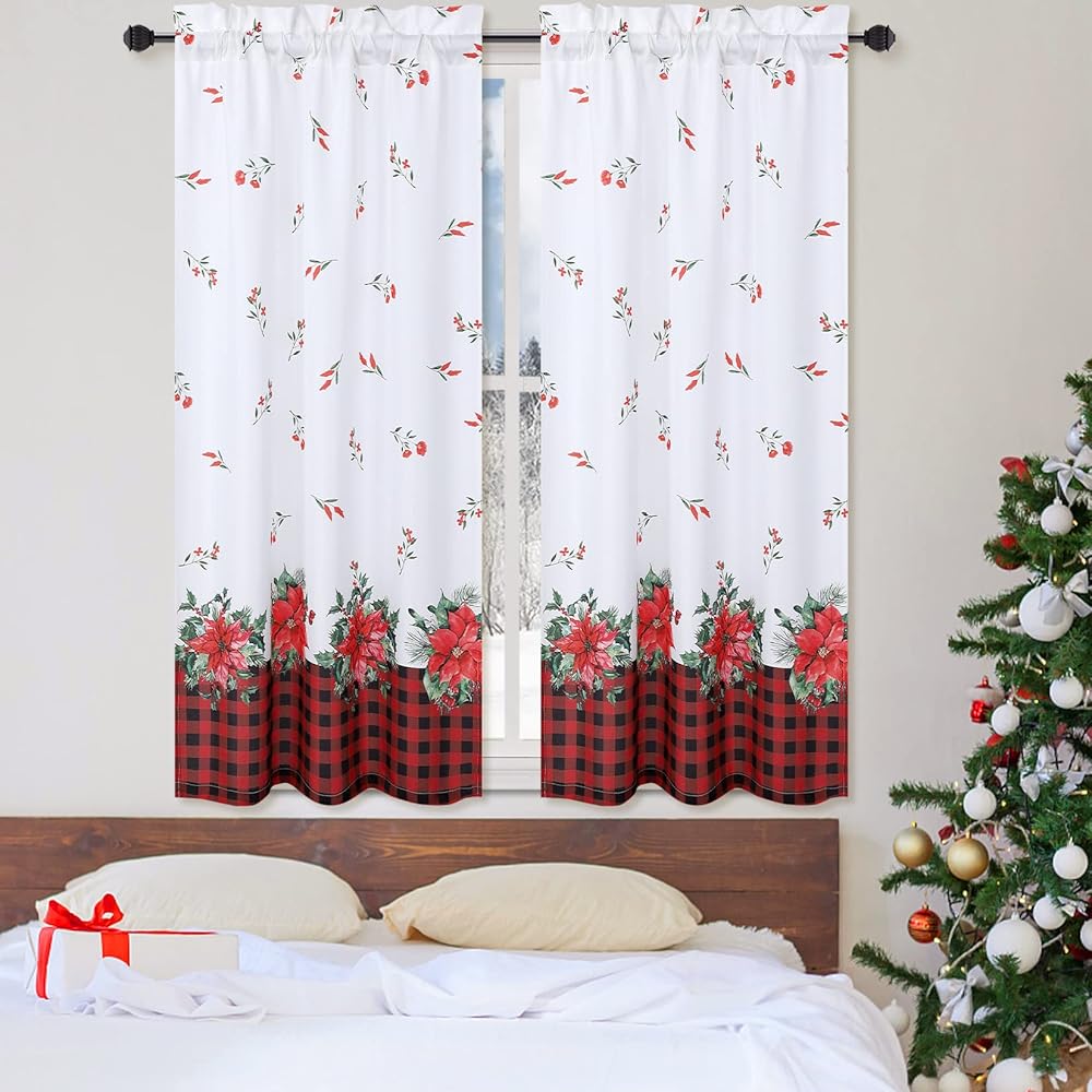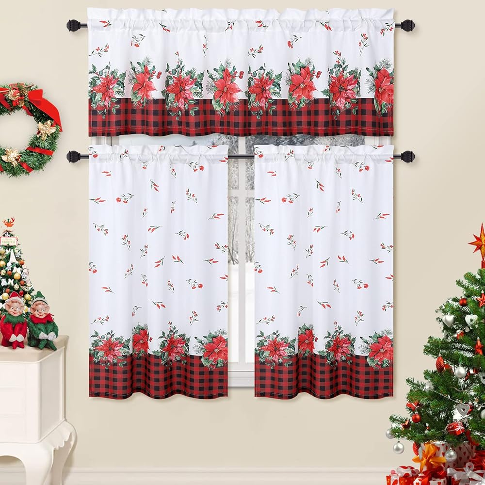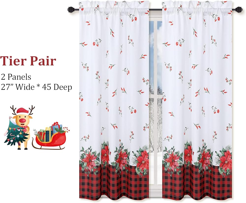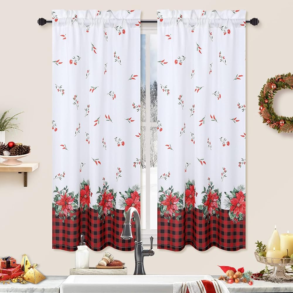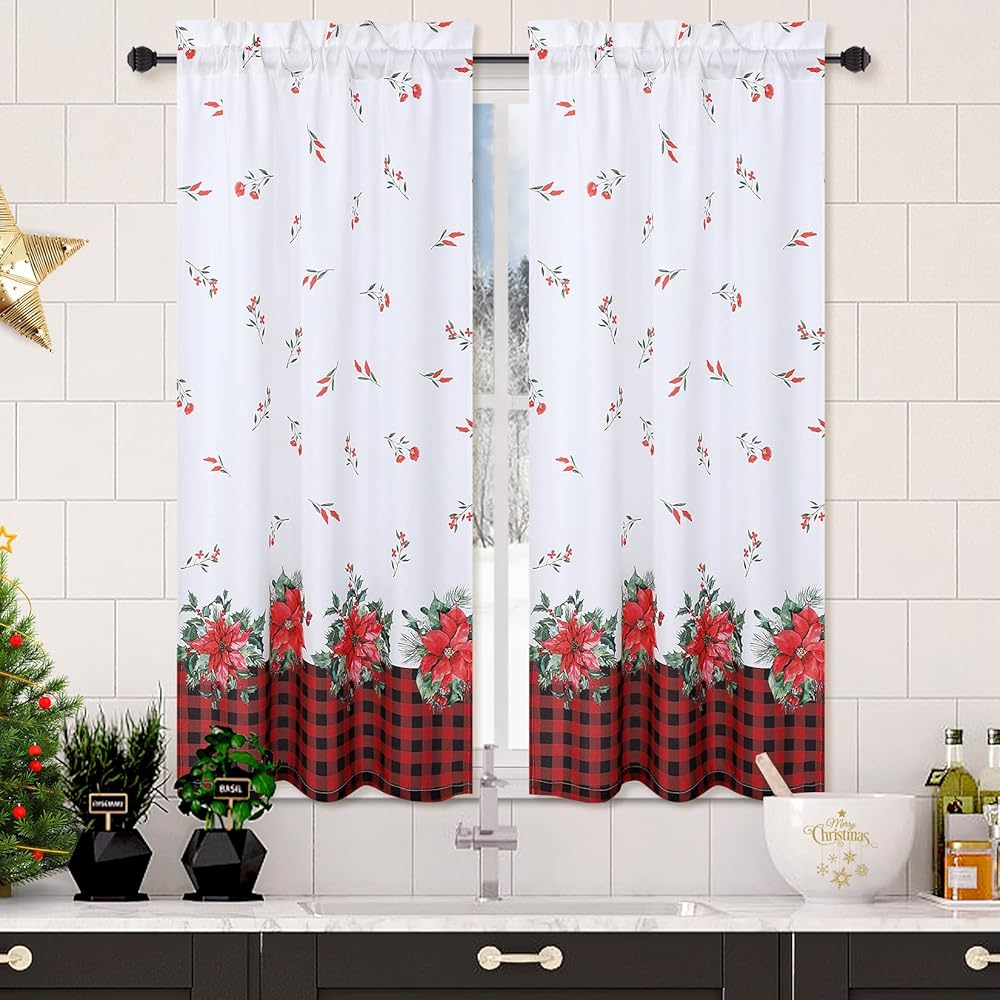 ROYGROW عيد الميلاد ديكور المطبخ الستار مقهى الستار 36 بوصة الطبقة الستائر نافذة العلاج قضيب الجيب لديكور المنزل 2 لوحات للحمام، غرفة المعيشة عيد الميلاد الديكور
