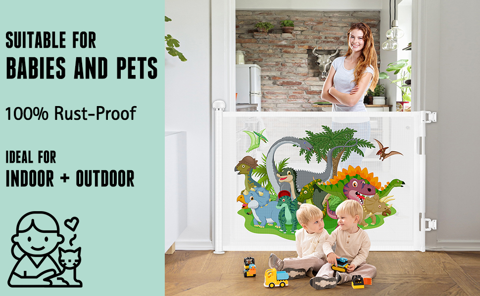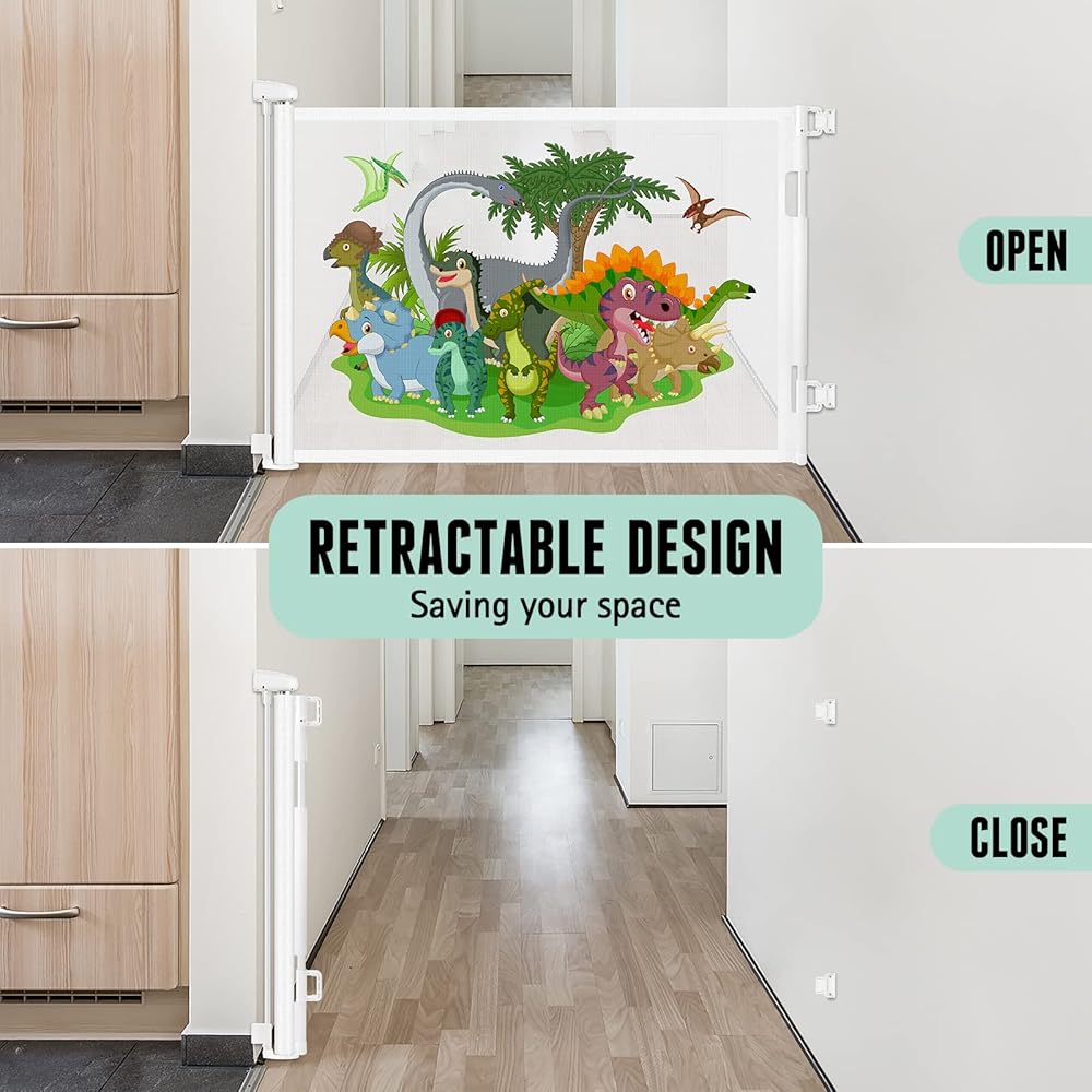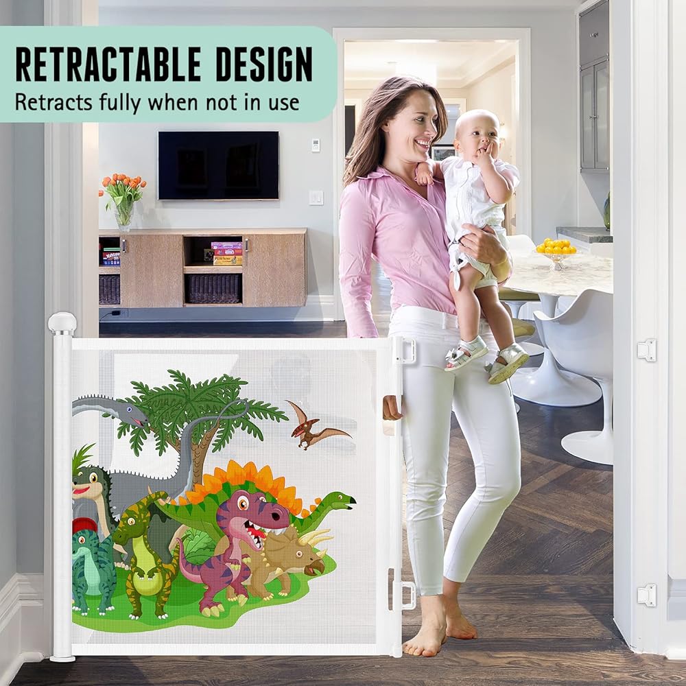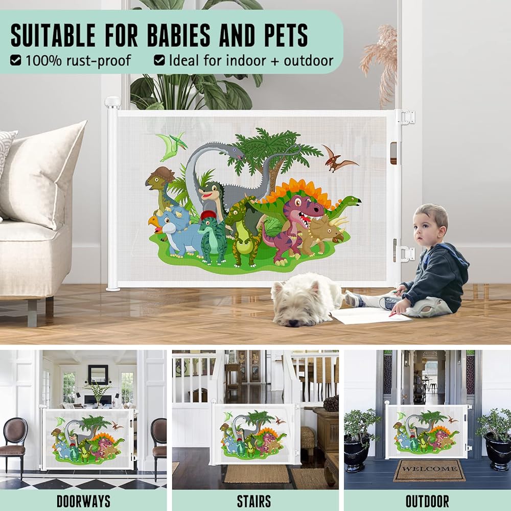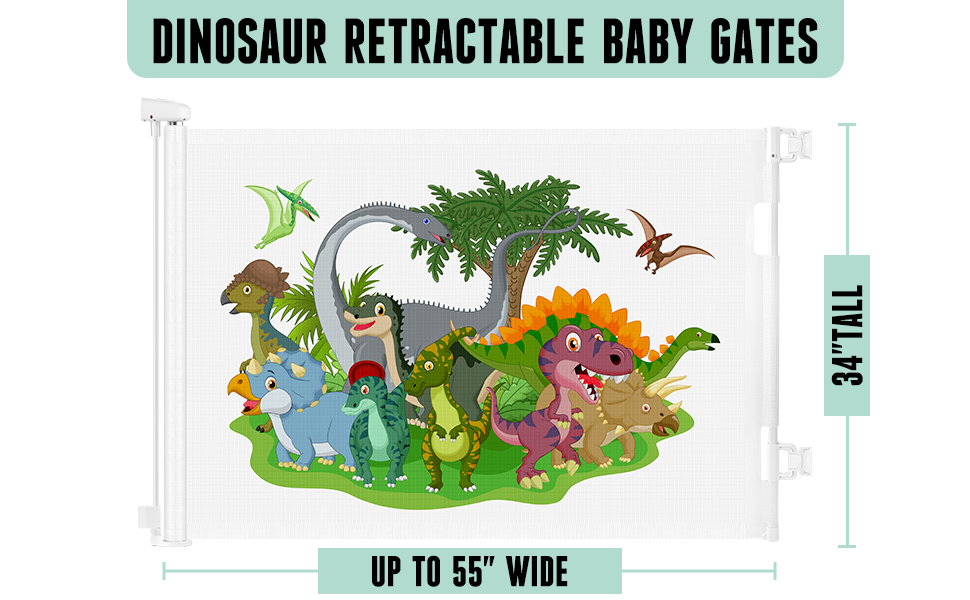 1. تصميم طباعة فريد: بوابة الأطفال القابلة للسحب من ستكوكيس مطبوعة بطلاء صديق للبيئة مع طابع ديناصور حيوي، وهو ملون ورائع وساحر يثري خيال الأطفال.