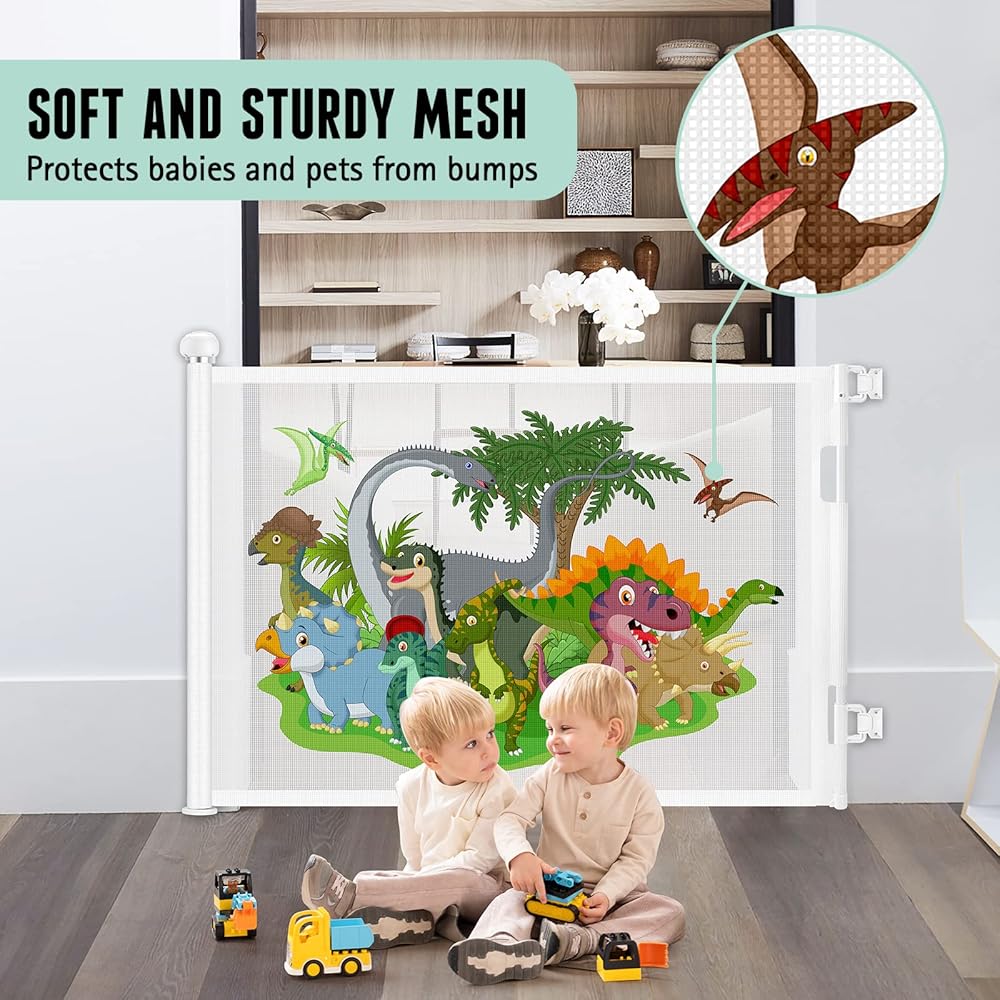 تصميم طباعة فريد: بوابات الأطفال القابلة للسحب من ستكوكيس مطبوعة بنمط ديناصور حيوي، وهي ملونة ورائعة وساحرة، تثري خيال الأطفال.