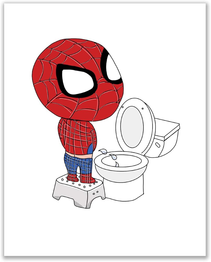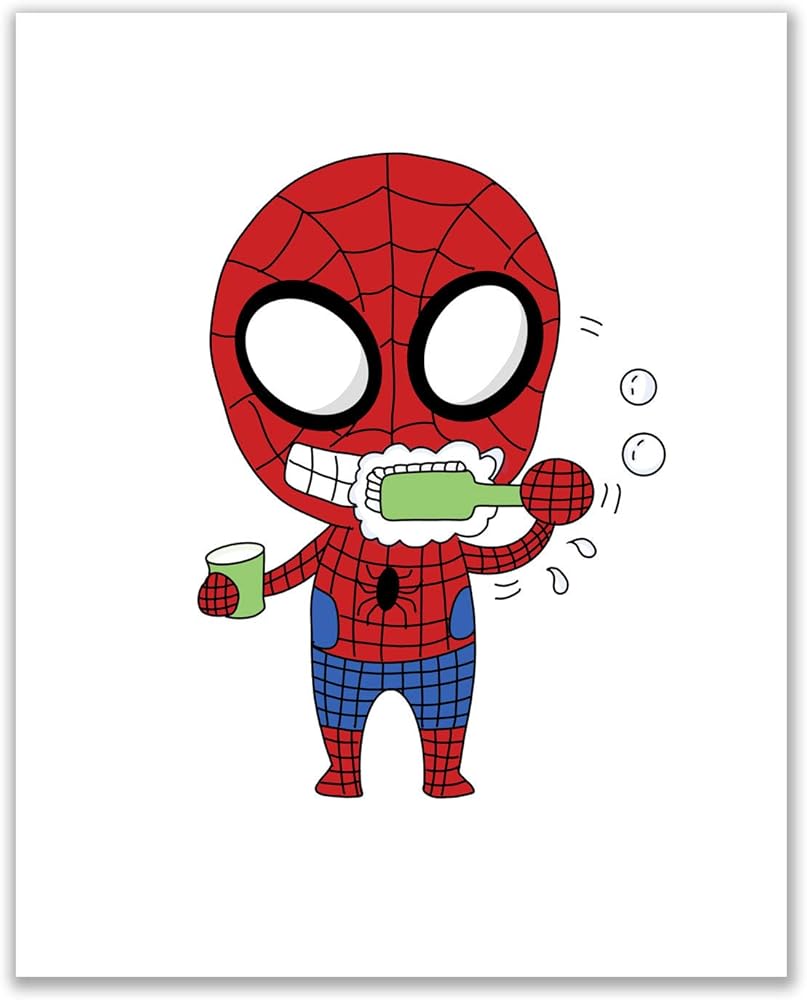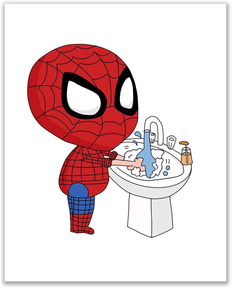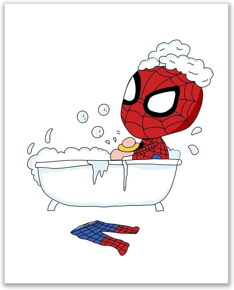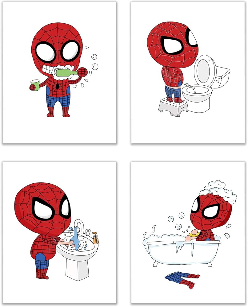 مطبوعات حمام سبايدرمان - مجموعة من 4 قطع (8 انش × 10 انش) ديكور فني للحائط