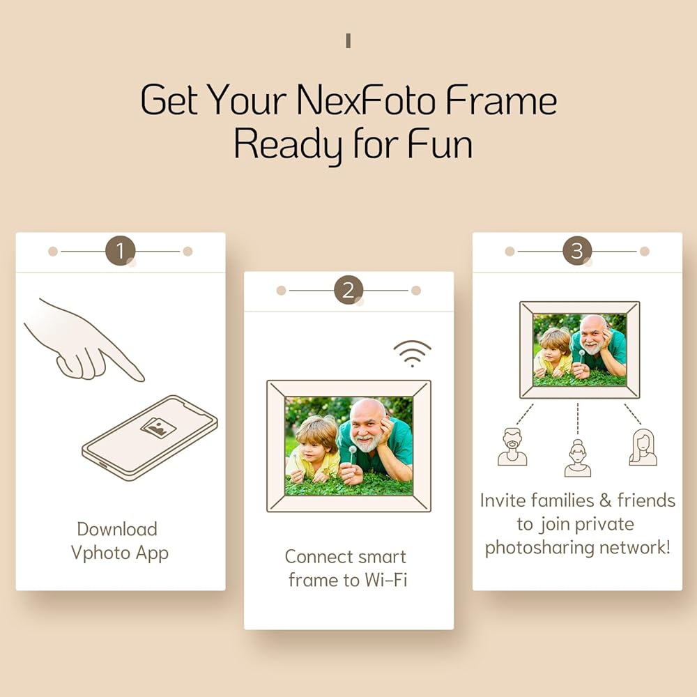 • كل لحظة مهمة: إن مشاركة لحظات الحياة مع أحبائك هو دائمًا أمر ممتع. تجعل إطارات NexFoto Wi-Fi الذكية التجربة بأكملها أسهل بكثير وأكثر متعة من أي وقت مضى. ضعه في مكانك الخاص أو قم بإهدائه للعائلات والأصدقاء كمكان جميل في المنزل لعرض كل اللحظات السعيدة والعزيزة.