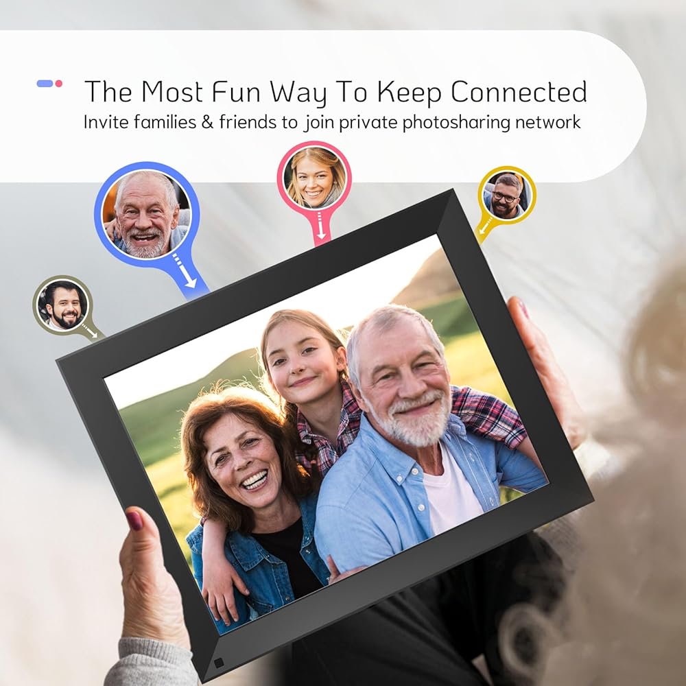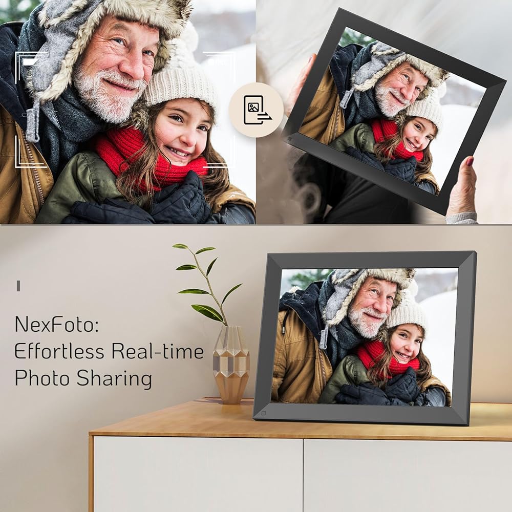 إطار صورة رقمي NexFoto مقاس 10.1 بوصة سعة 64 جيجابايت، إطار صور إلكتروني عالي الدقة يعمل بتقنية WiFi WiFi، أضف صورًا من صور Google، شارك الصور/مقاطع الفيديو عبر التطبيق/USB، وضع هدية غير علبة، للأم/عيد الميلاد، أسود