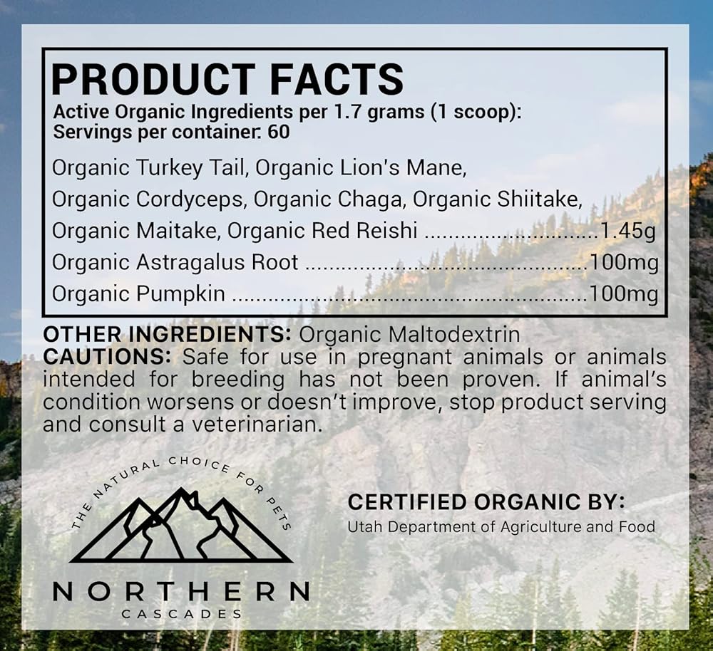 معتمد من وزارة الزراعة الأمريكية: يحتوي مسحوق مزيج الفطر الخاص بنا على 10 فطر عضوي تم اختياره يدويًا لتقديم الدعم المناعي المثالي لكلبك وقطتك الأليف. إنه معتمد من وزارة الزراعة الأمريكية، مما يعني أنه لا يحتوي على مواد كيميائية أو ملوثات ضارة!