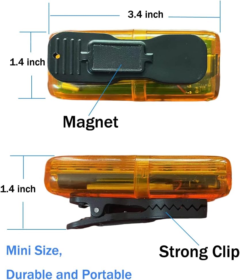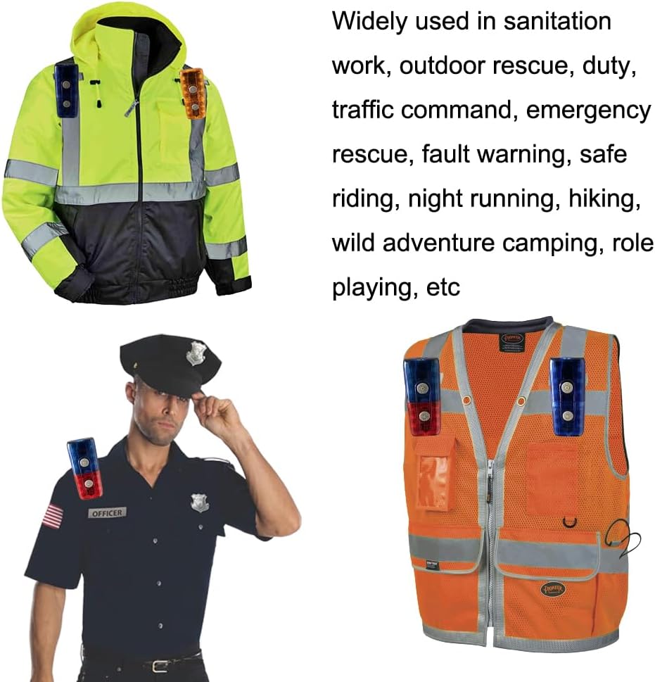 [Easy to use]:This police warning safety strobe light clip and magnet can be fixed on vest,brake,belt,backpack. It has 2 working modes. Mode 1: Blue-red flashes (displayed alternately), and then red and blue lights flash simultaneously. Mode 2: White light,act as flashlight.In the blinking state, resetting the police will temporarily go to sleep, and then tap the prompt to wake it from sleep to blinking.Visibility in flash mode is 1,000 meters,ensuring your travel safety.