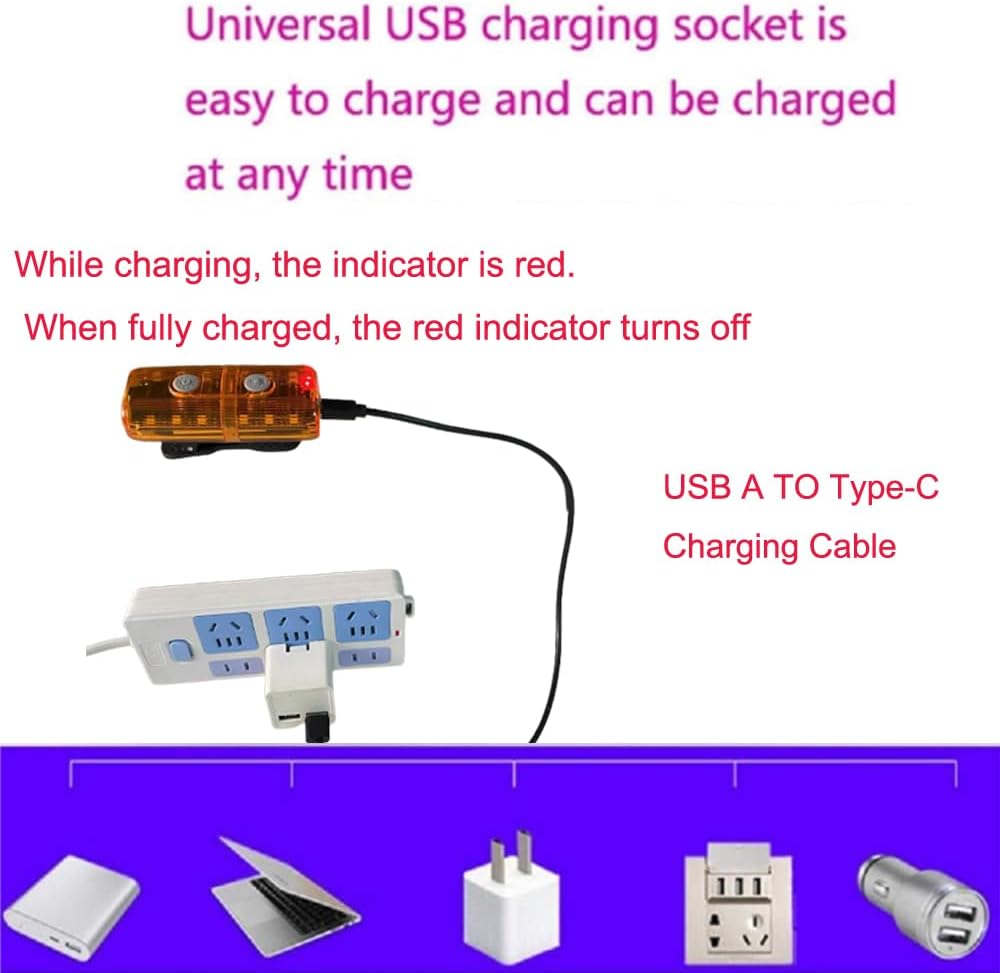[USB Rechargeable]:The LED flashing warning Emergency light with built-in 600mAh rechargeable lithium battery, which can be charged by mobile phone charger and car charger,and a USB charging cable is provided.The charging time is 3-4 hours and the continuous use time is more than 16 hours. It is energy-saving and environmentally friendly, suitable for any low-light activity,and a good complement to outdoor or reflective equipment.