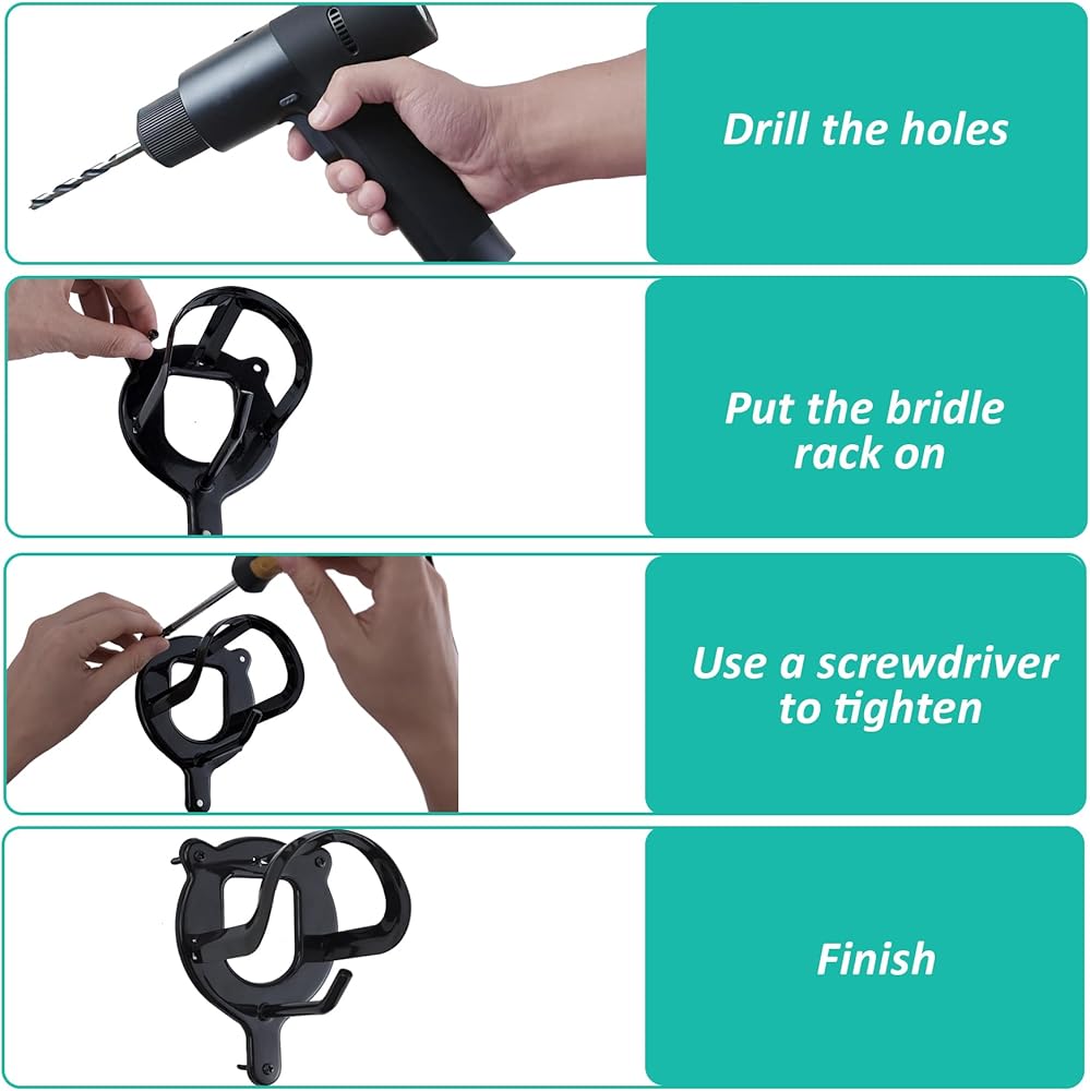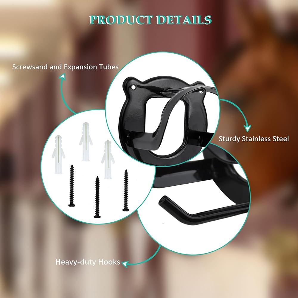 • Sturdy and Durable: Crafted with high-quality metal, our Horse Bridle Rack boasts a strong load-bearing capacity, preventing any bending or deformation. The surface is coated with an anti-rust coating, giving it a beautiful matte black appearance while minimizing rust spots. Rest assured, this rack will stand the test of time.