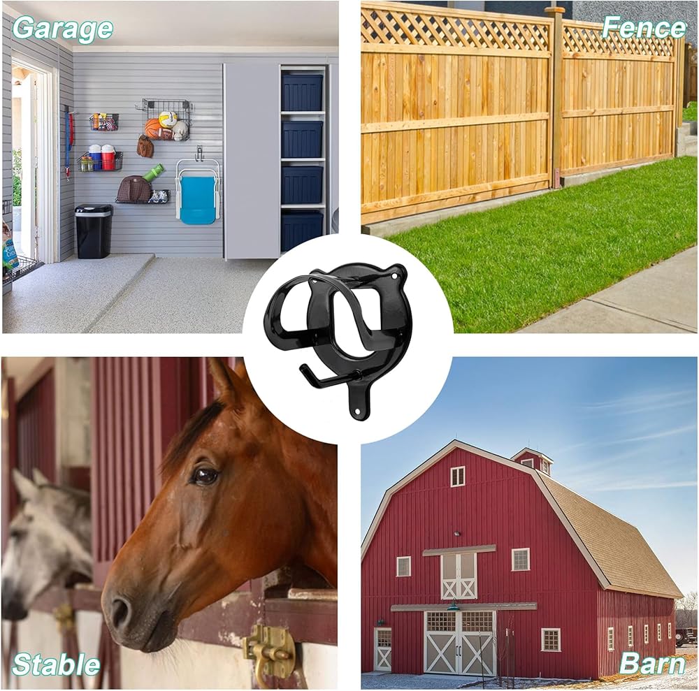 LAJIAOZ 24 قطعة من لجام الحصان، حامل لجام معدني خفيف الوزن، خطاف لجام الحصان، حامل لجام الحصان، شماعات معدنية مع أنابيب وبرغي لمستلزمات حظيرة الخيول (أسود)