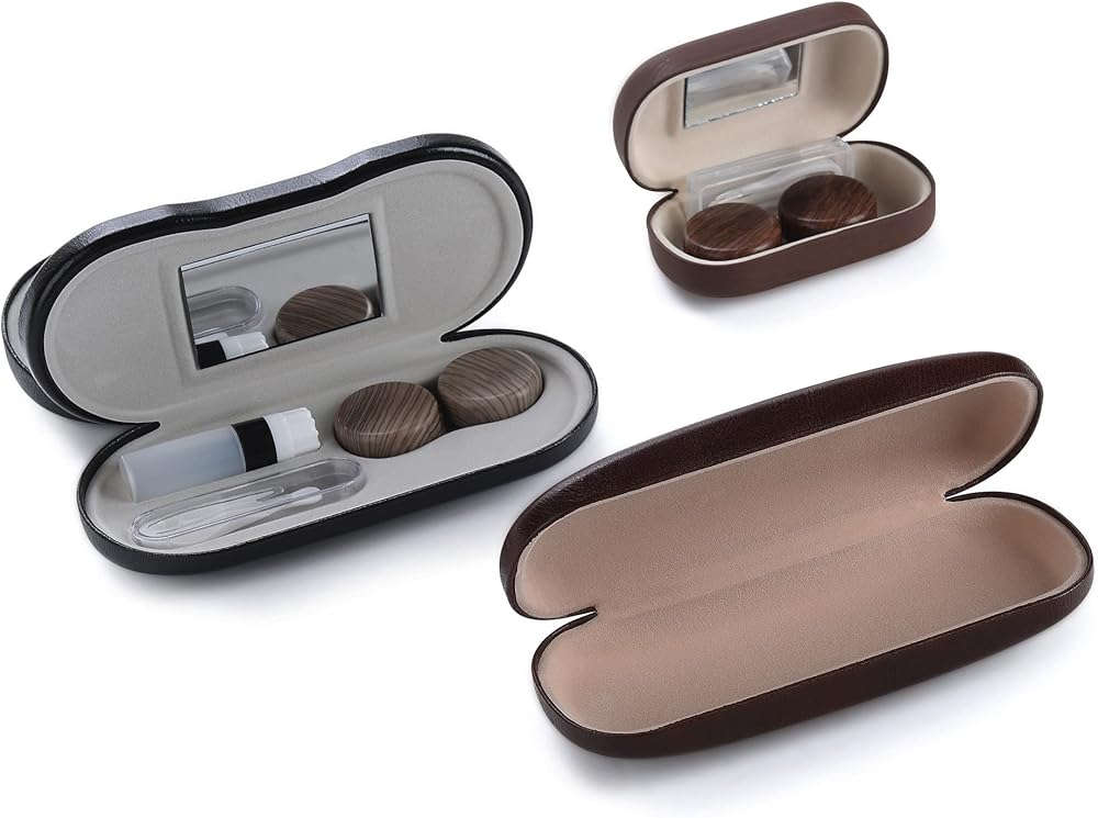 【3 عبوات】مجموعة أدوات سفر وعدسات لاصقة 2 في 1 مع حقيبة نظارات إضافية وحقيبة عدسات لاصقة, بني فاتح, موديرن مينيماليست