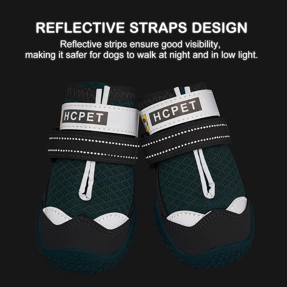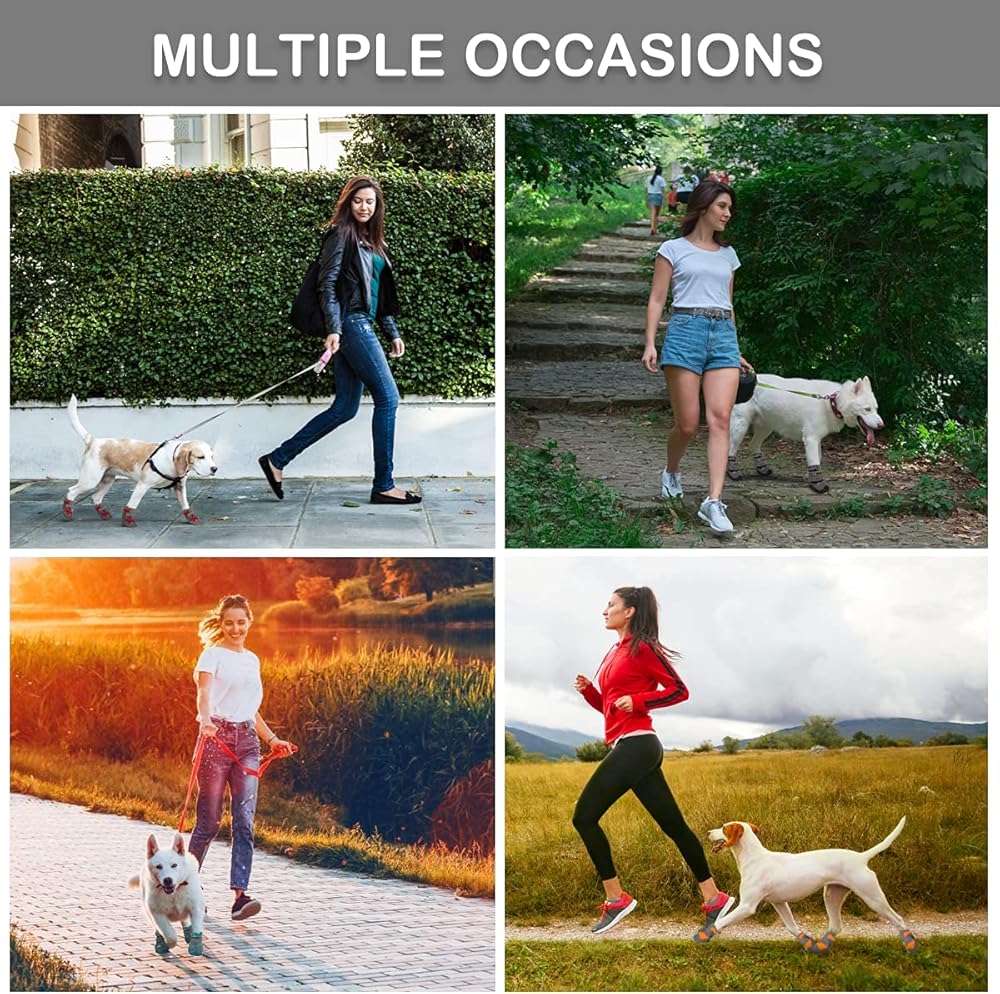 رؤية عالية: تم تصميم أحذية الكلاب بألوان زاهية، وزخارف علوية عاكسة وحزام عاكس، مما يعزز الرؤية في الليل أو الظروف المظلمة، ويحافظ على سلامة أصدقائك حيث يمكنك رؤيتهم بسهولة.