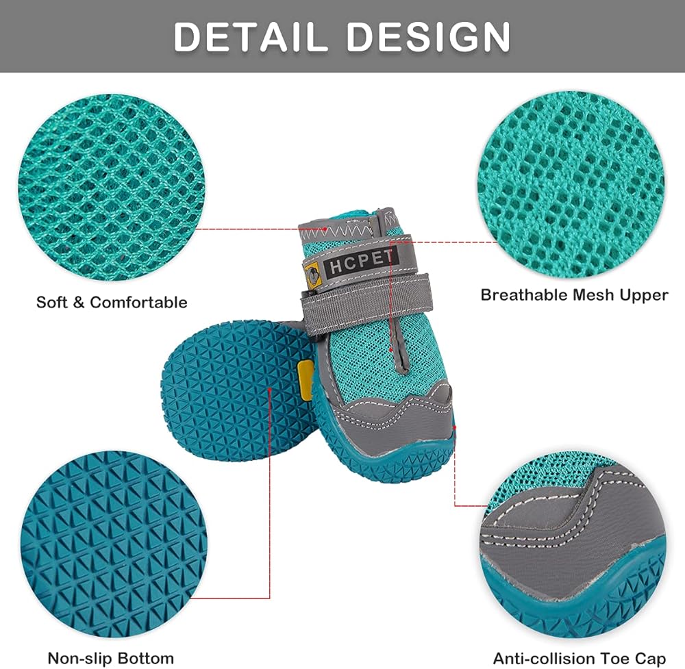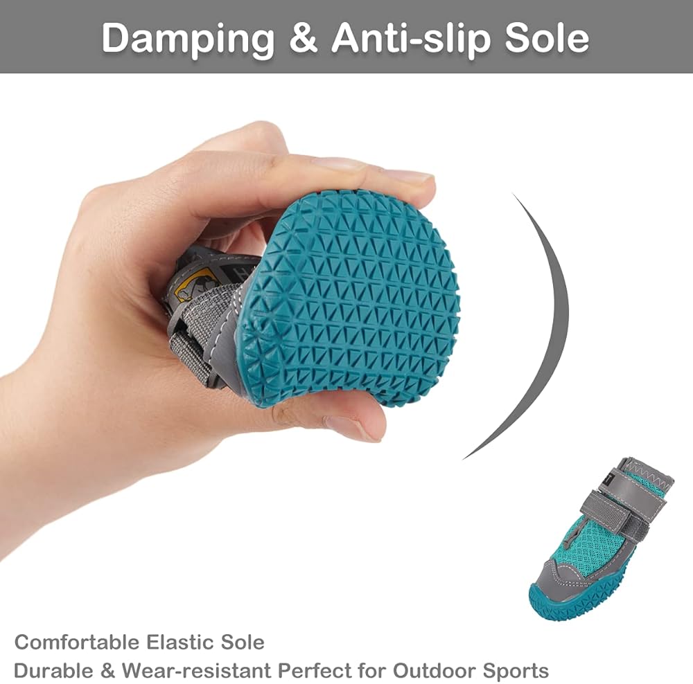 مقاوم للانزلاق وحماية للمخالب: يوفر النعل المتين غير القابل للانزلاق قبضة وثبات رائعين، ويساعد الكلاب على الوقوف والتحرك بشكل أفضل على الأرضية الزلقة. منطقة أصابع القدم مغطاة بالكامل بمطاط مقاوم للتآكل، مما يحمي أقدام الجراء من الأشواك الحادة والأرصفة الساخنة والصخور الصلبة والطرق الموحلة وما إلى ذلك. مثالية للمشي لمسافات طويلة وحقائب الظهر والتخييم والجري على الطرق وغيرها من الأنشطة الداخلية والخارجية.
