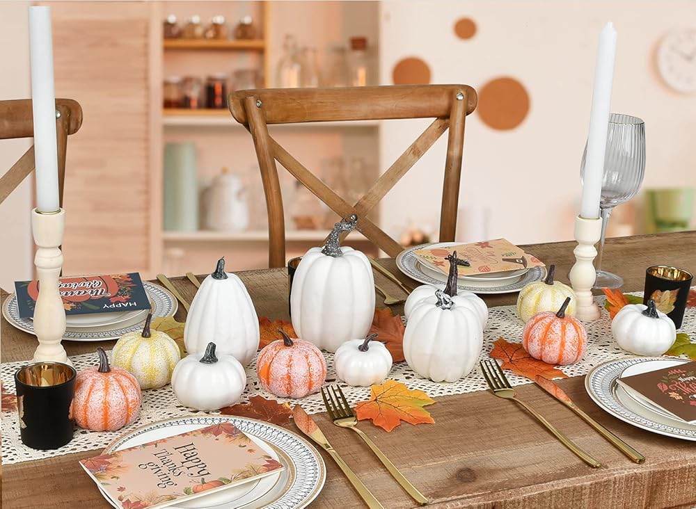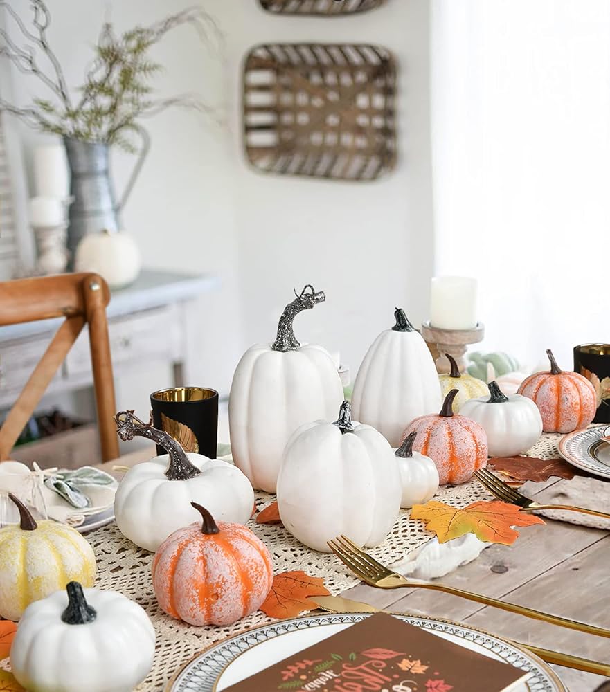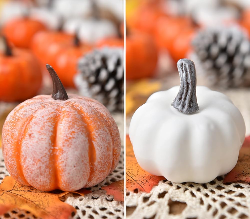 These Artificial Pumpkins are perfect for Halloween, autumn, harvest occasion, baby shower, all seasons, fall-themed wedding, Thanksgiving and other fall themes, event decorations, baby shower, .
