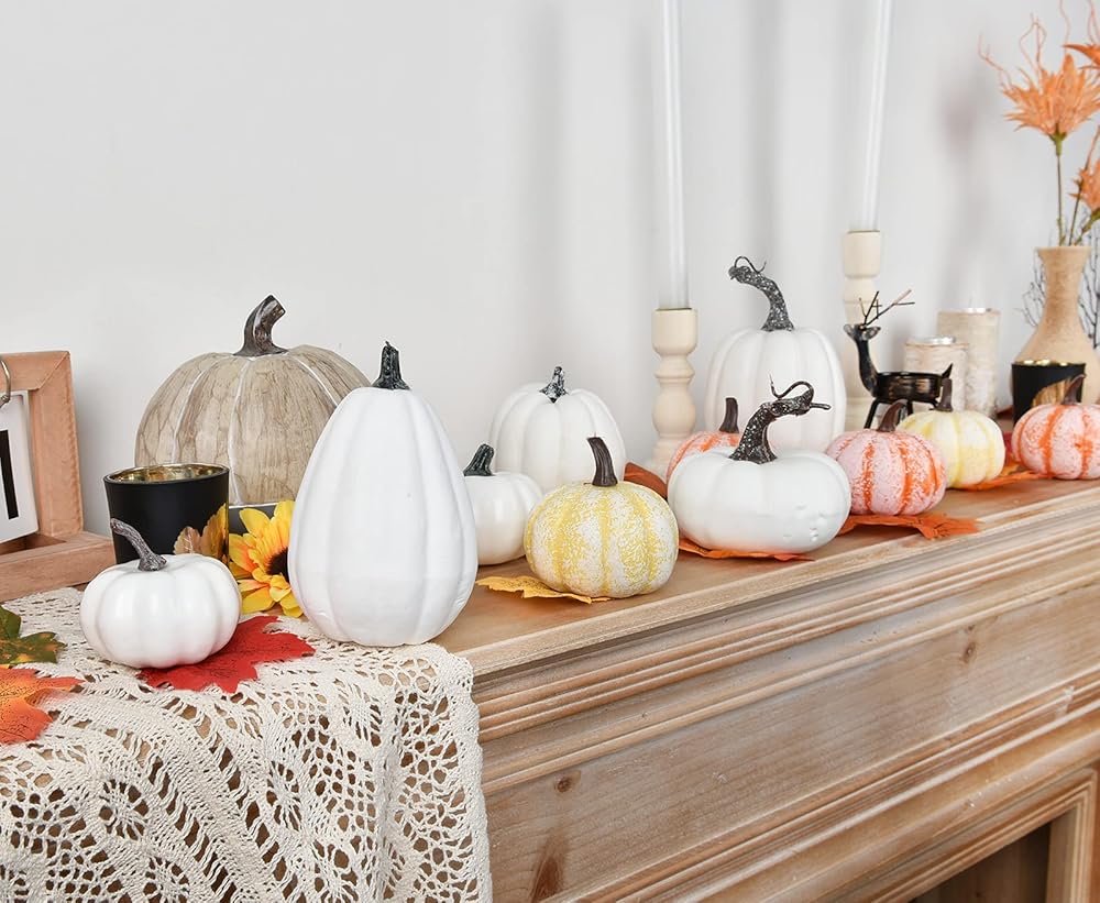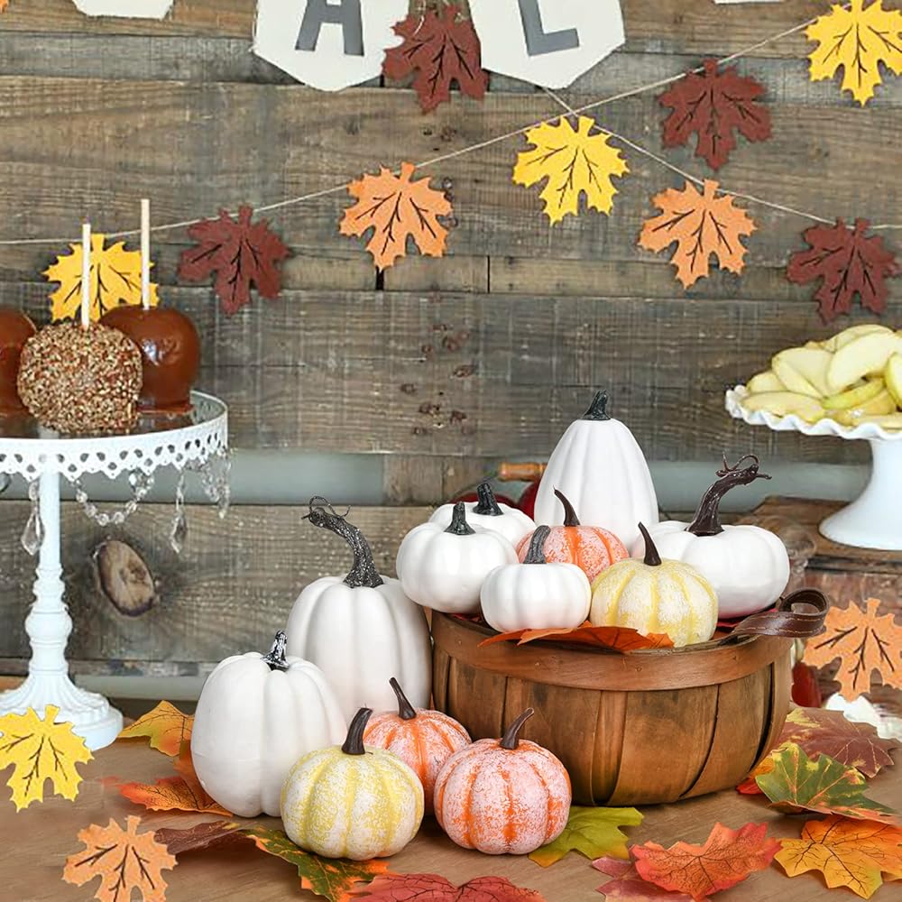 DearHouse 12Pcs Artificial Pumpkins Harvest Fall Decoration,4 pcs Various Sizes Pumpkins for Autumn Thanksgiving Halloween Home Decor