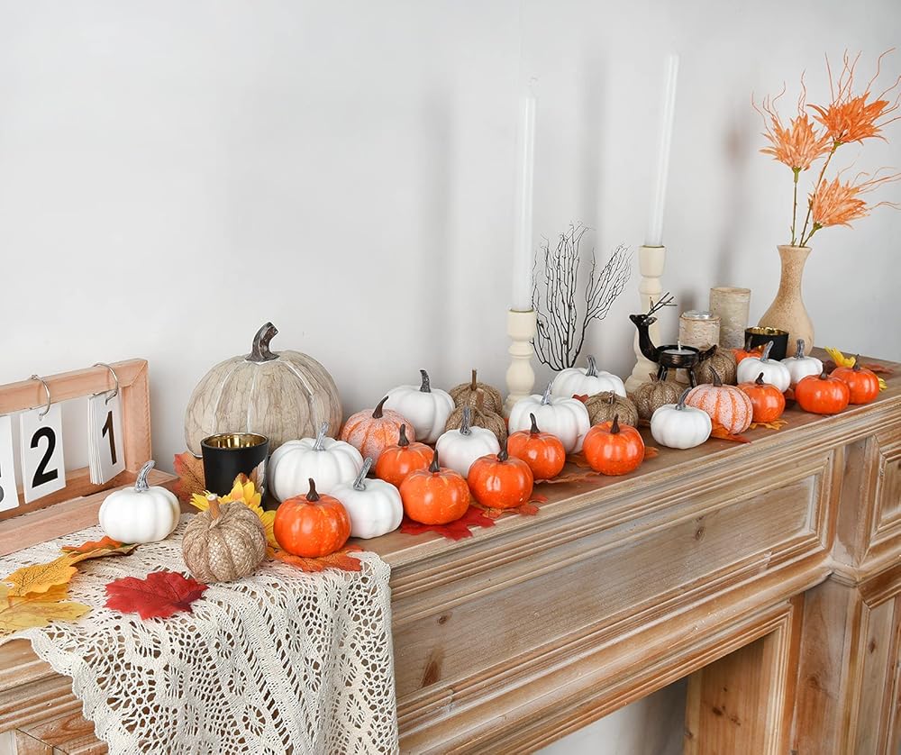 مجموعة تزيين المنزل من اليقطين الاصطناعي لعيد الشكر، المادة: إسفنج وبلاستيك صديق للبيئة