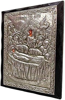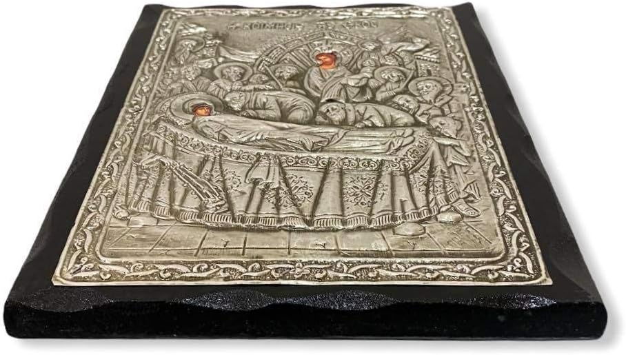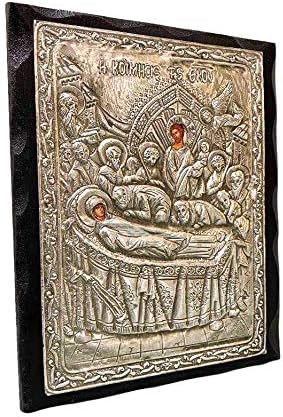 مصنوع يدويا من الخشب المسيحي الارثوذكسي اليوناني - رمز معدني لدورميشن اوف ذا ثيوتوكوس (24 × 19 سم او 9.4 × 7.5 انش) خشب صلب