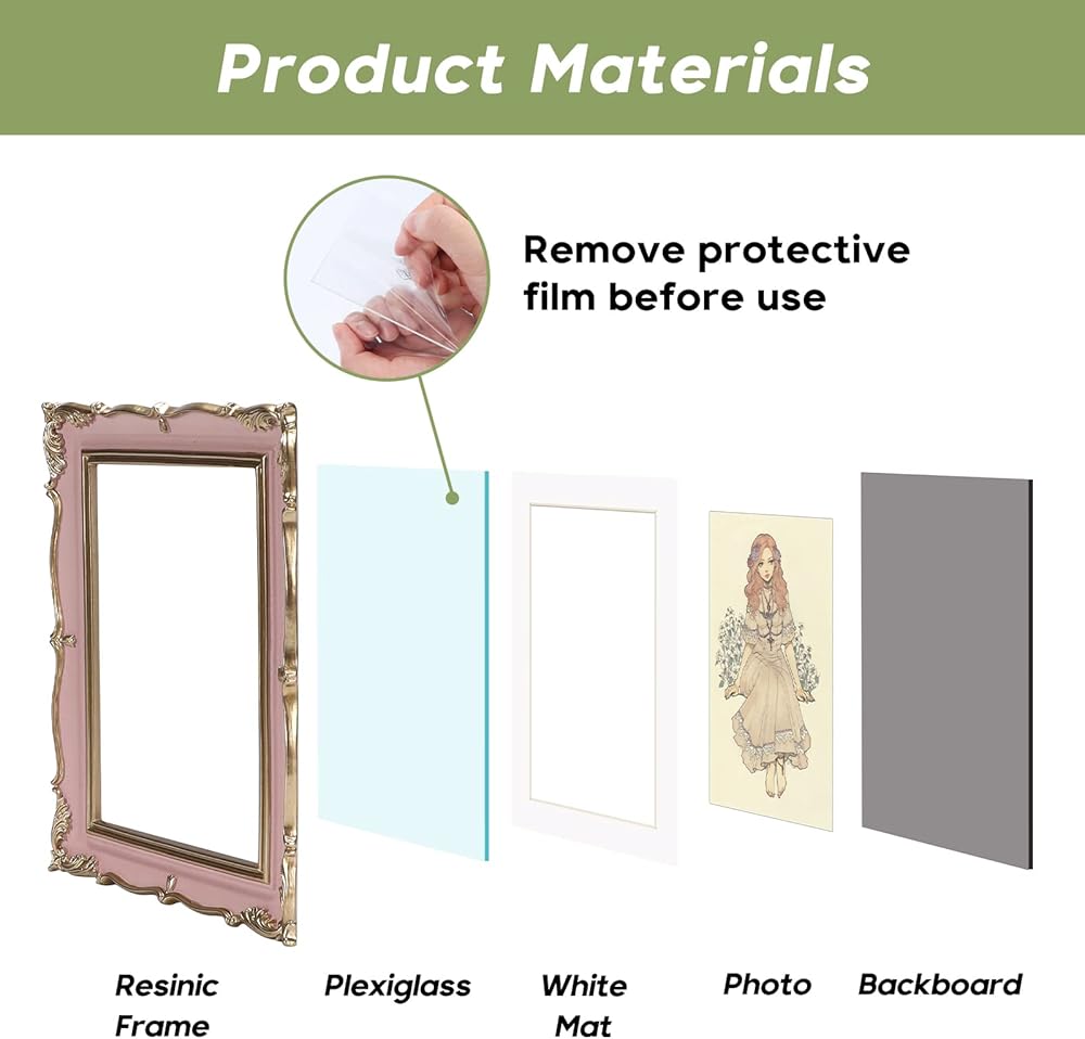 • مظهر عتيق مزخرف: إطار صورة أبيض أنيق مع حواف ذهبية منحوتة رائعة وظهر مخملي أسود، تصميمه المستوحى من الطراز العتيق سيمنح مساحتك لمسة من الجمال والفخامة