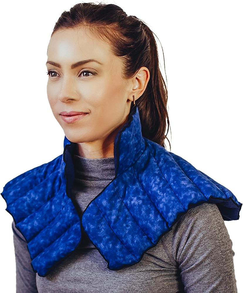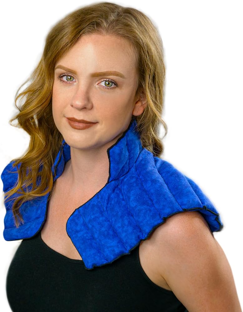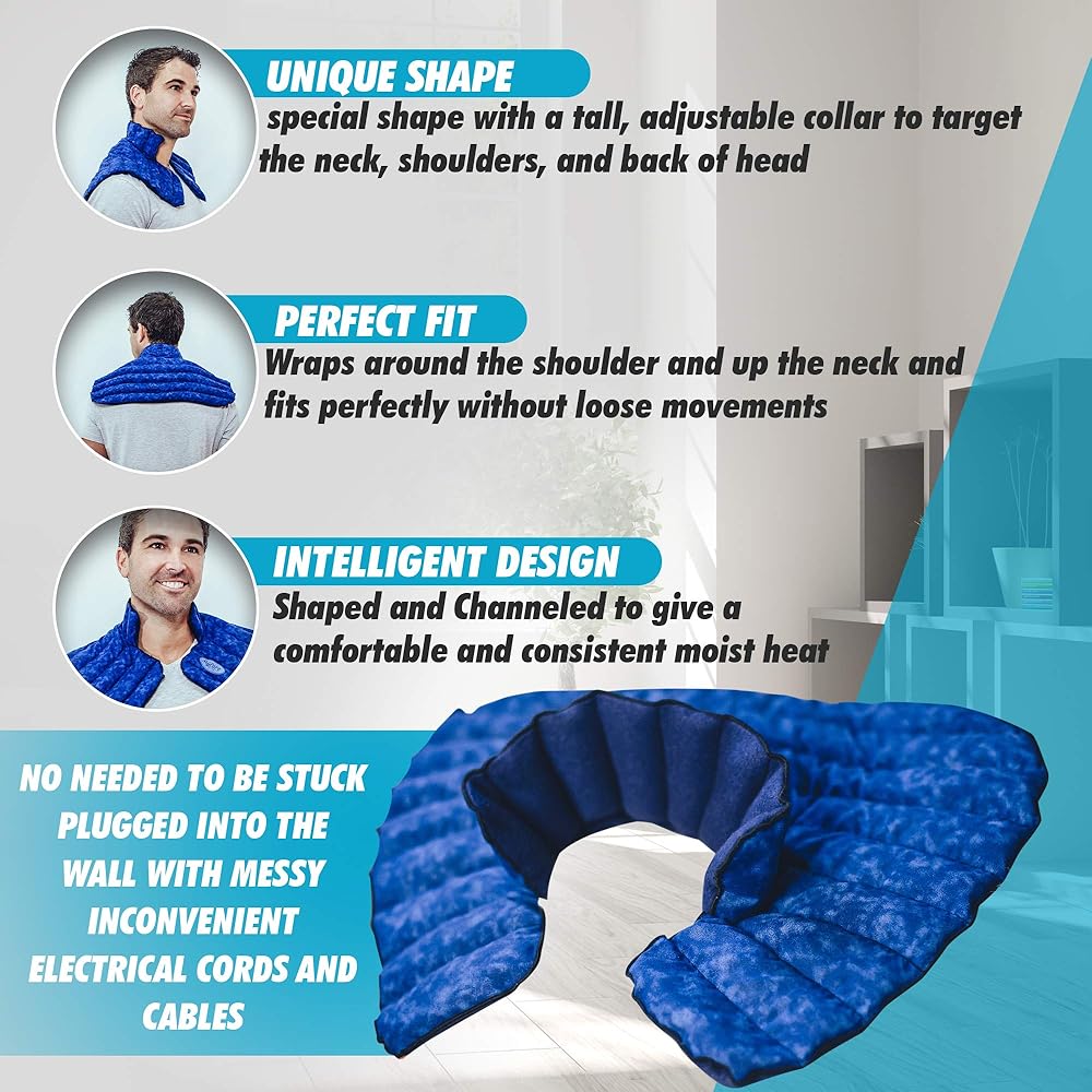 Natural Microwavable Heating Pad for deep penetrating moist heat that promotes blood circulation in and around the Neck and Shoulders. We have intelligently designed this wrap to comfortably wrap the neck and shoulders and stays in place without needing to be held giving the freedom to move around without being plugged into a wall.