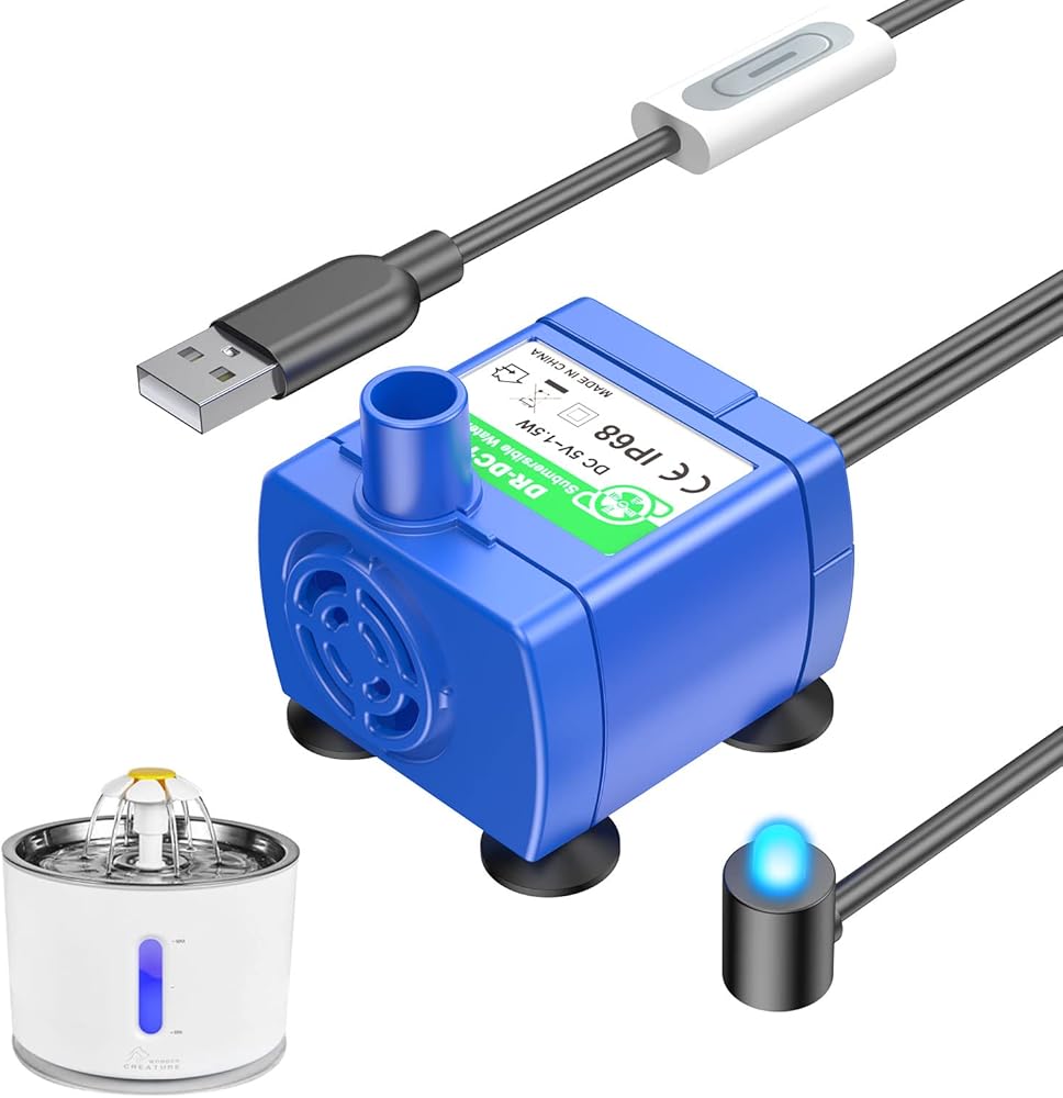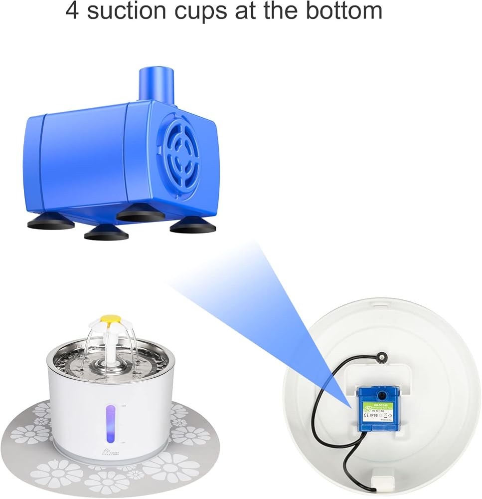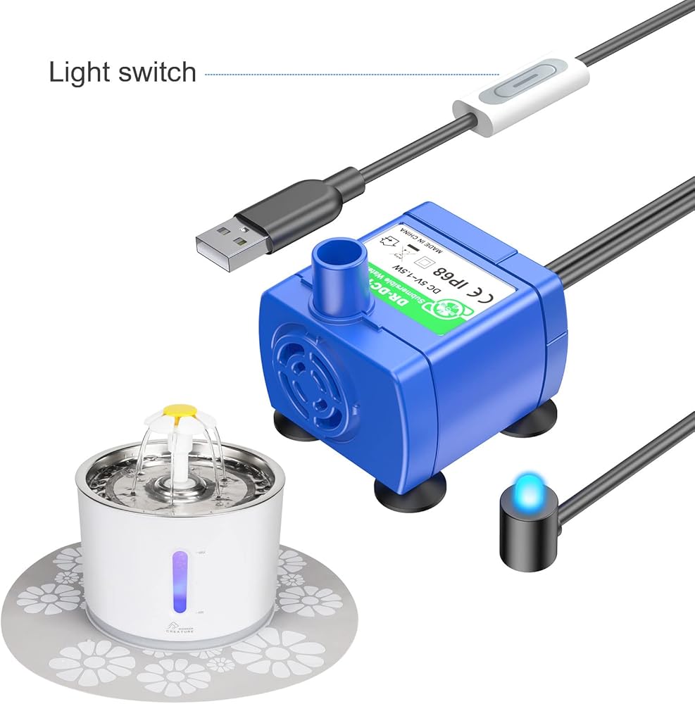 - مضخة نافورة للحيوانات الأليفة مع ضوء LED لنافورة القطط والكلاب