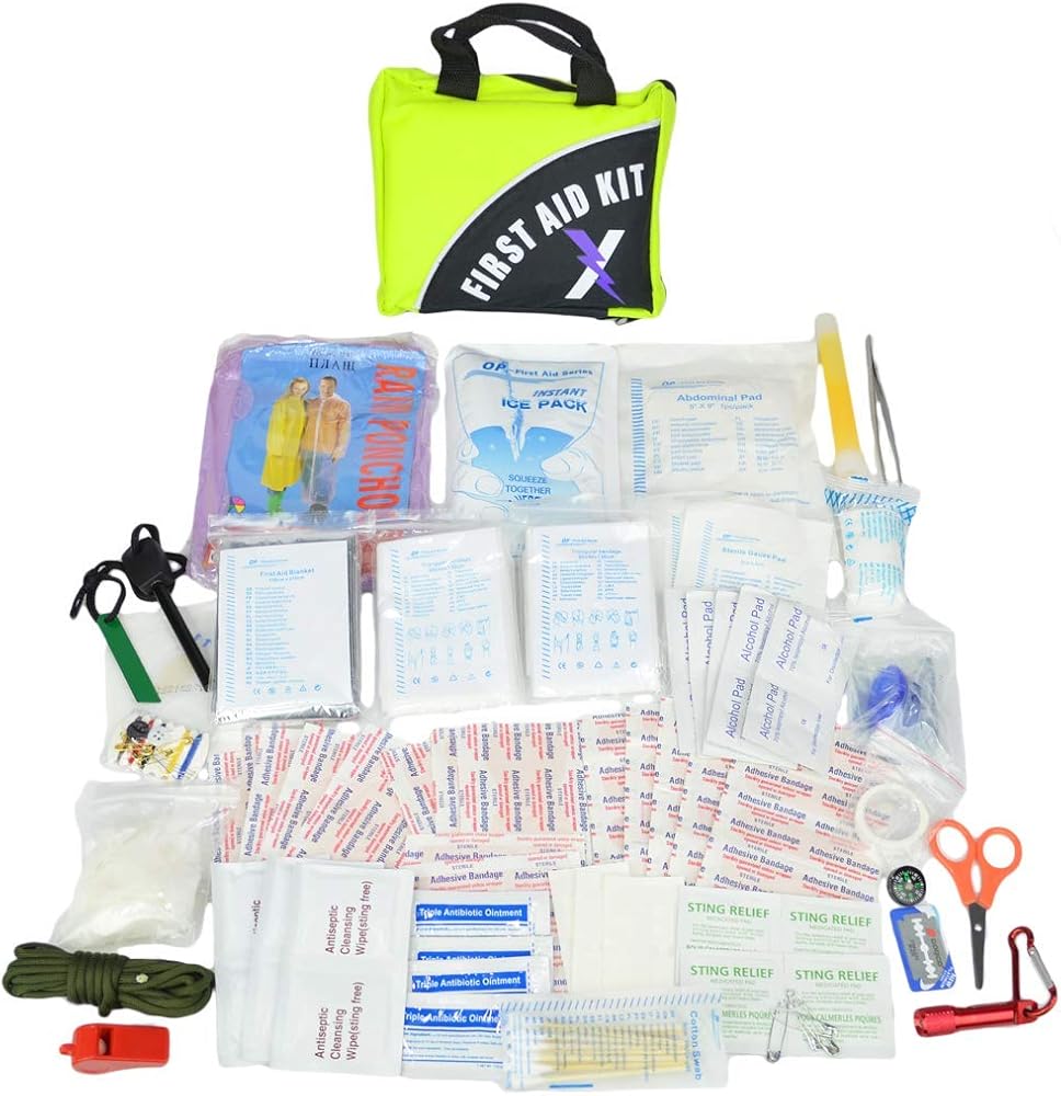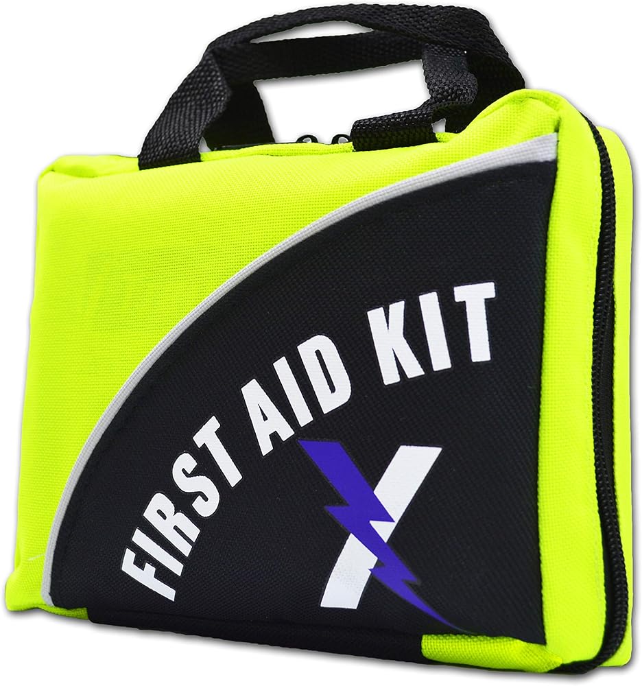مجموعة أدوات النجاة للإسعافات الأولية في حالات الطوارئ مكونة من 104 قطعة من Lightning X Hi-Vis مع حقيبة للتخييم ومكان العمل والسفر والرياضة