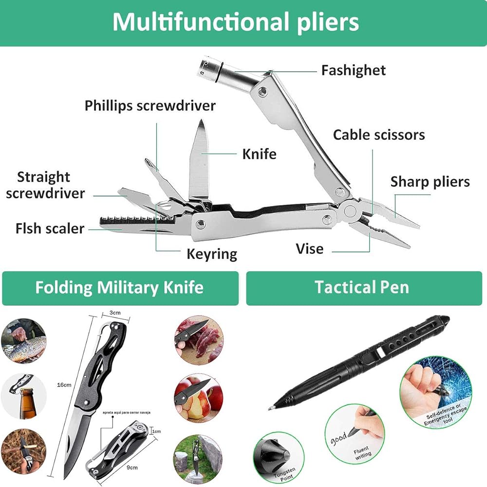 • 【أفكار هدايا رائعة】 مجموعة النجاة 63 في 1 هي صندوق أدوات يحتاجه الجميع. إنها أفكار رائعة لهدية عيد الميلاد أو الكريسماس أو عيد الحب، خاصة أنها مناسبة للأولاد المراهقين أو العائلة الذين يحبون رحلات التخييم والمشي لمسافات طويلة والصيد وركوب الدراجات الجبلية. إنها أيضًا هدايا صيد مناسبة للرجال.
